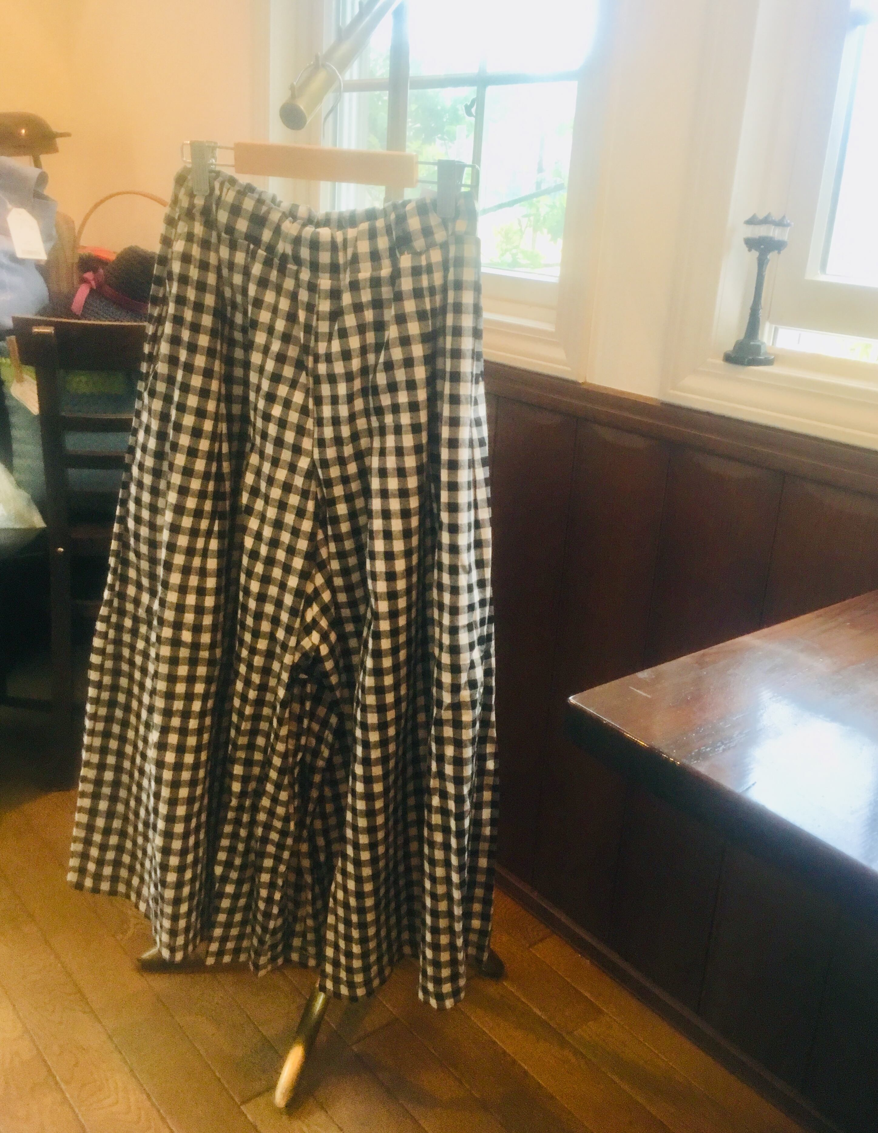 懐かしくも新しい。細かすぎず、大きすぎないギンガムチェックのワイドなフレアパンツ。