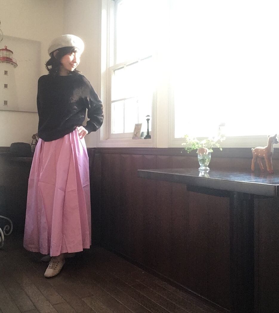 ラグランスリーブの切り替えも女性らしいシルエットを生み出してくれ、柔和な雰囲気に。