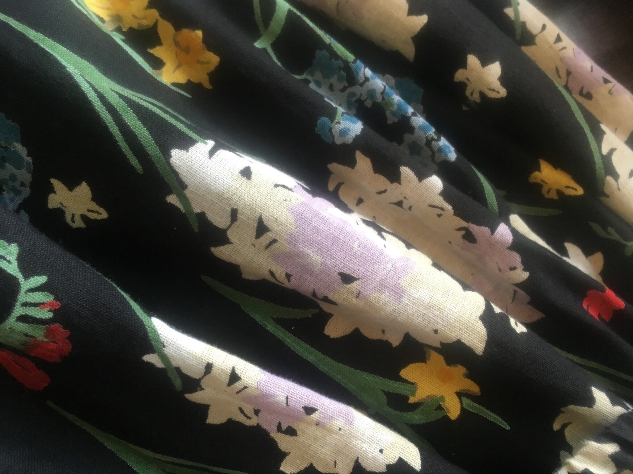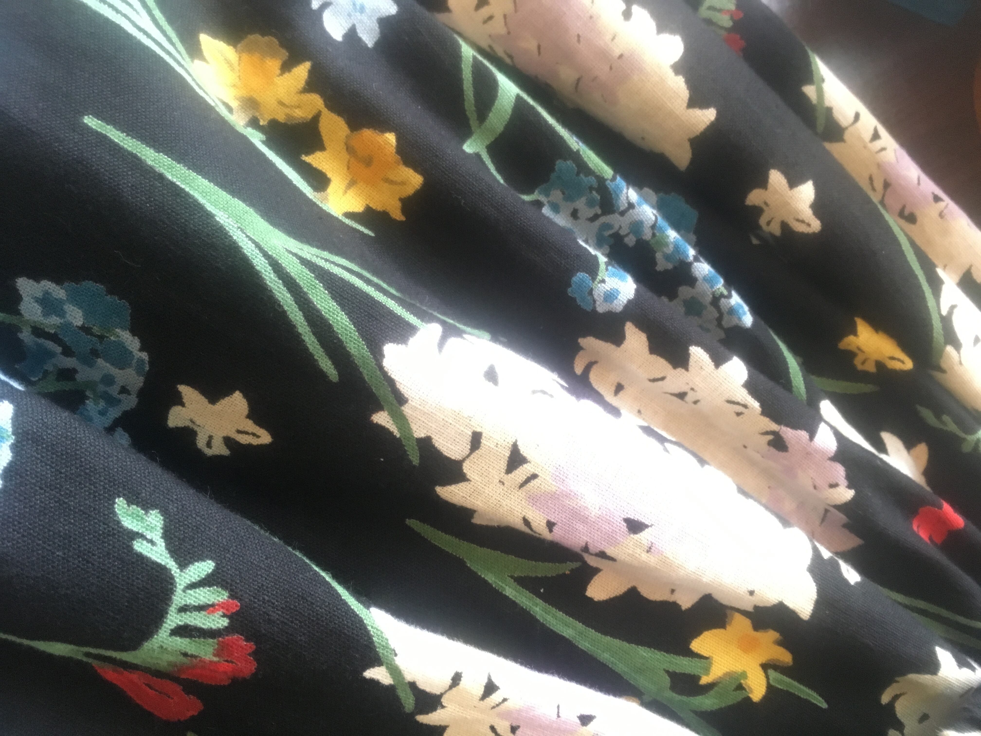 黒地にヒヤシンスなどの花々が清々しく、ちょっとレトロで大人の雰囲気。