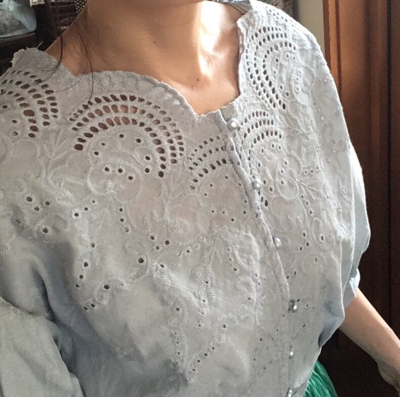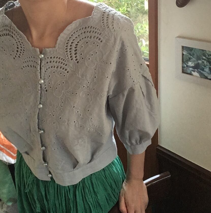 デコルテを美しく、首元をすっきり見せてくれるスカラップブラウス。透かし模様も涼しげで透明感を漂わせています。エレガントでノスタルジックなファッションはもちろん、ボトムにデニムを合わせてみたり、かっこ良く着こなすのも!