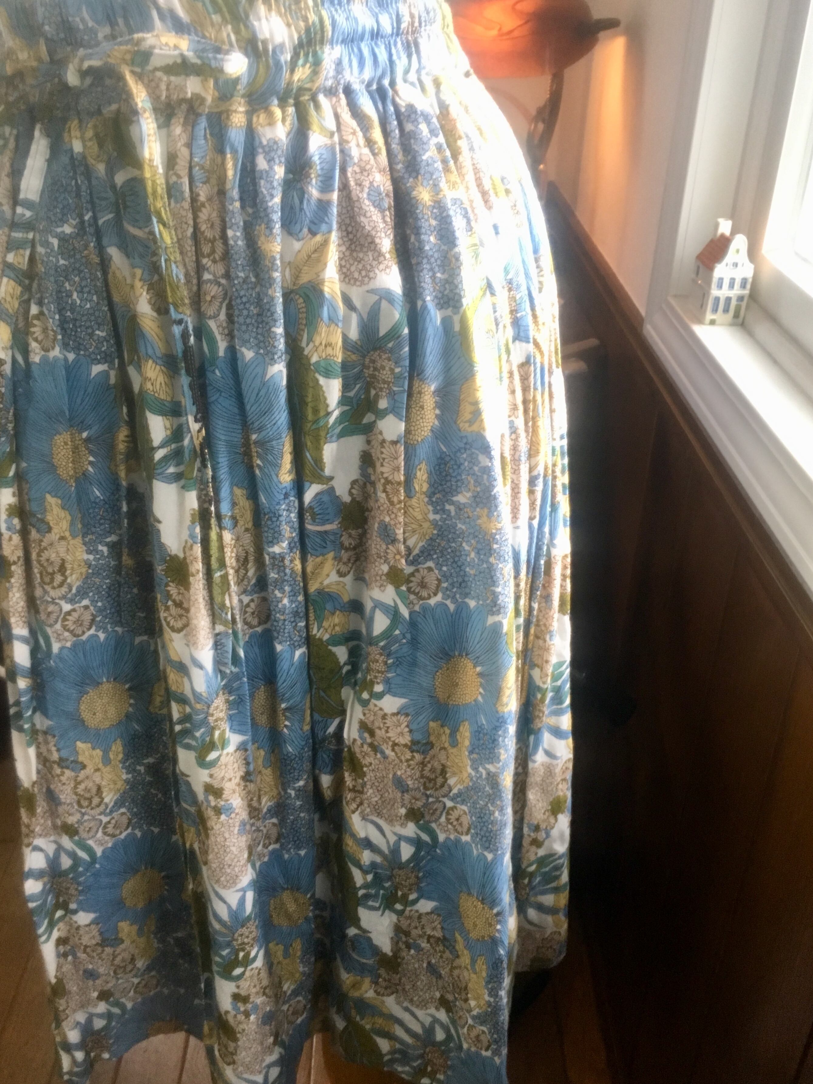 表地はレーヨンなので、落ち感が美しく、広がりが抑えられています。裏地は綿で、べたついたり、まとわりつかないので、快適なのも嬉しいです。