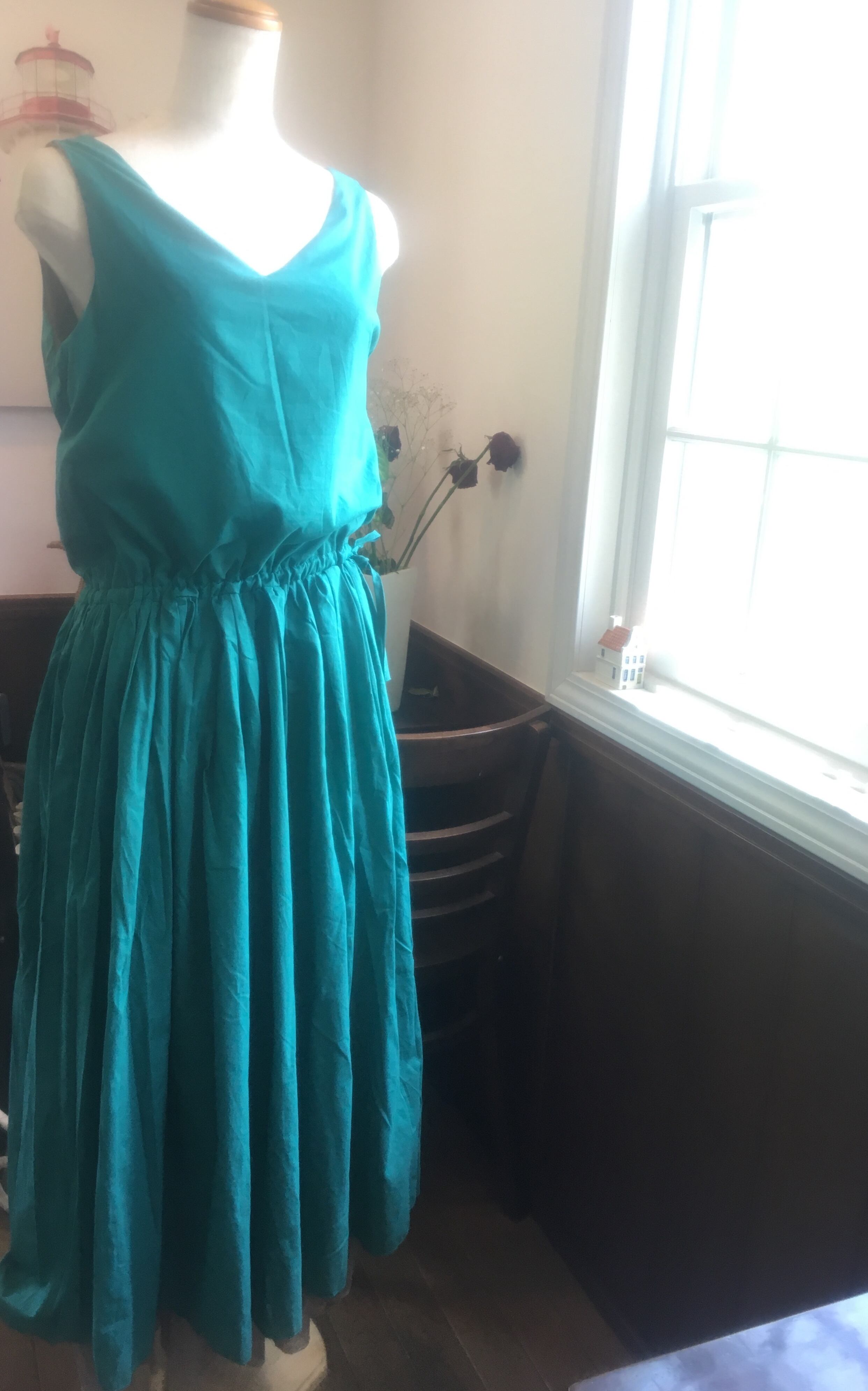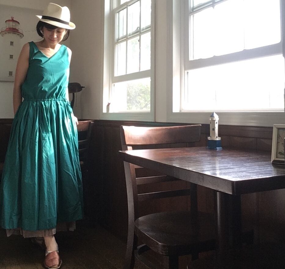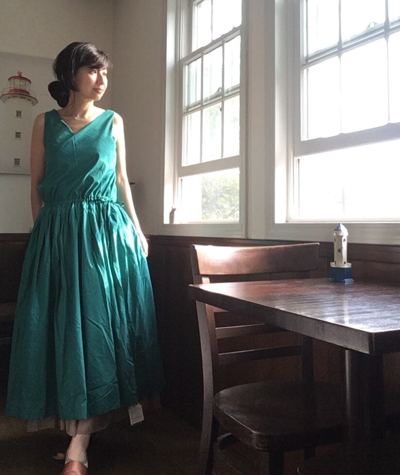 リバーシブル コットンワンピース green×beige