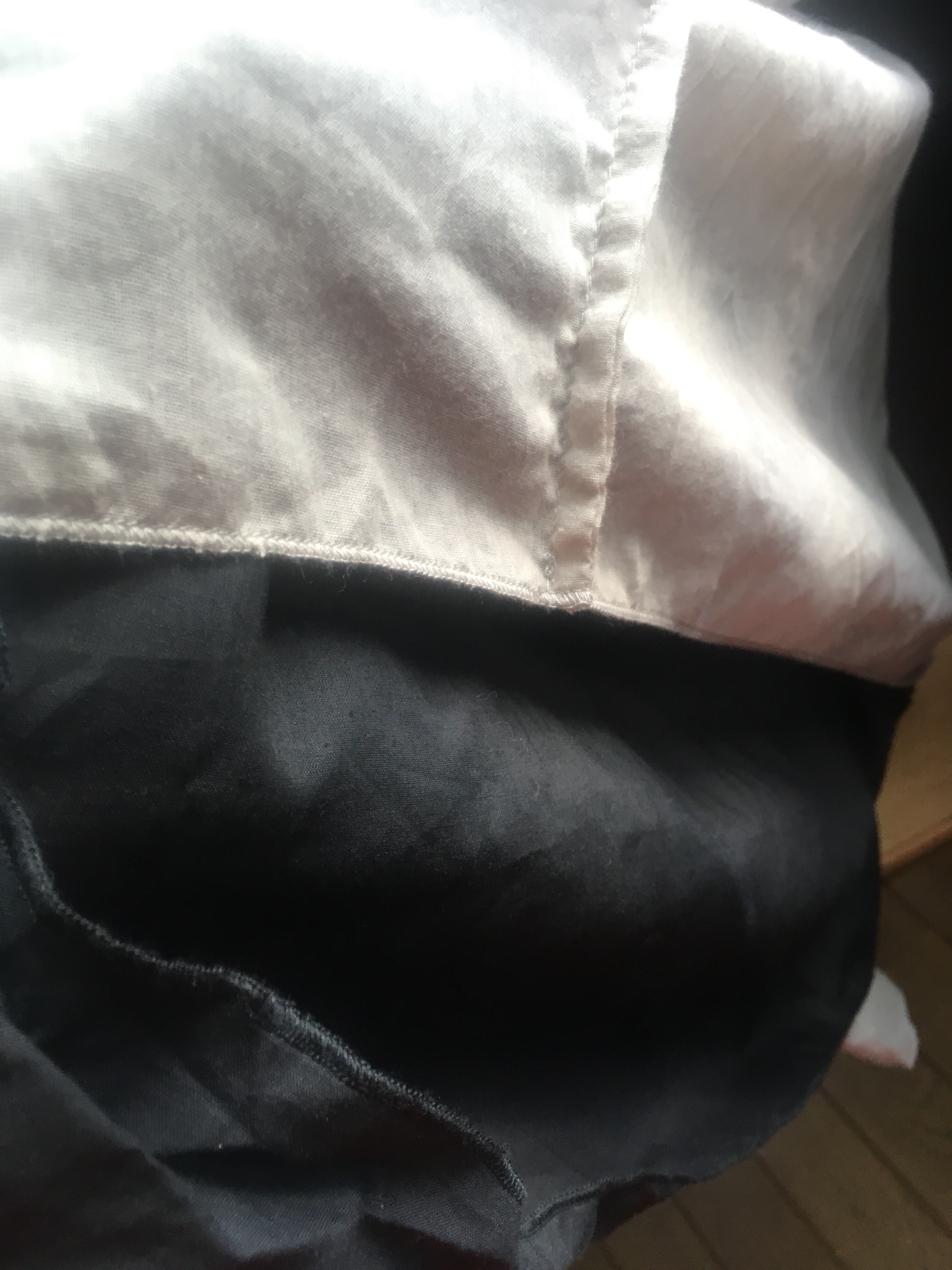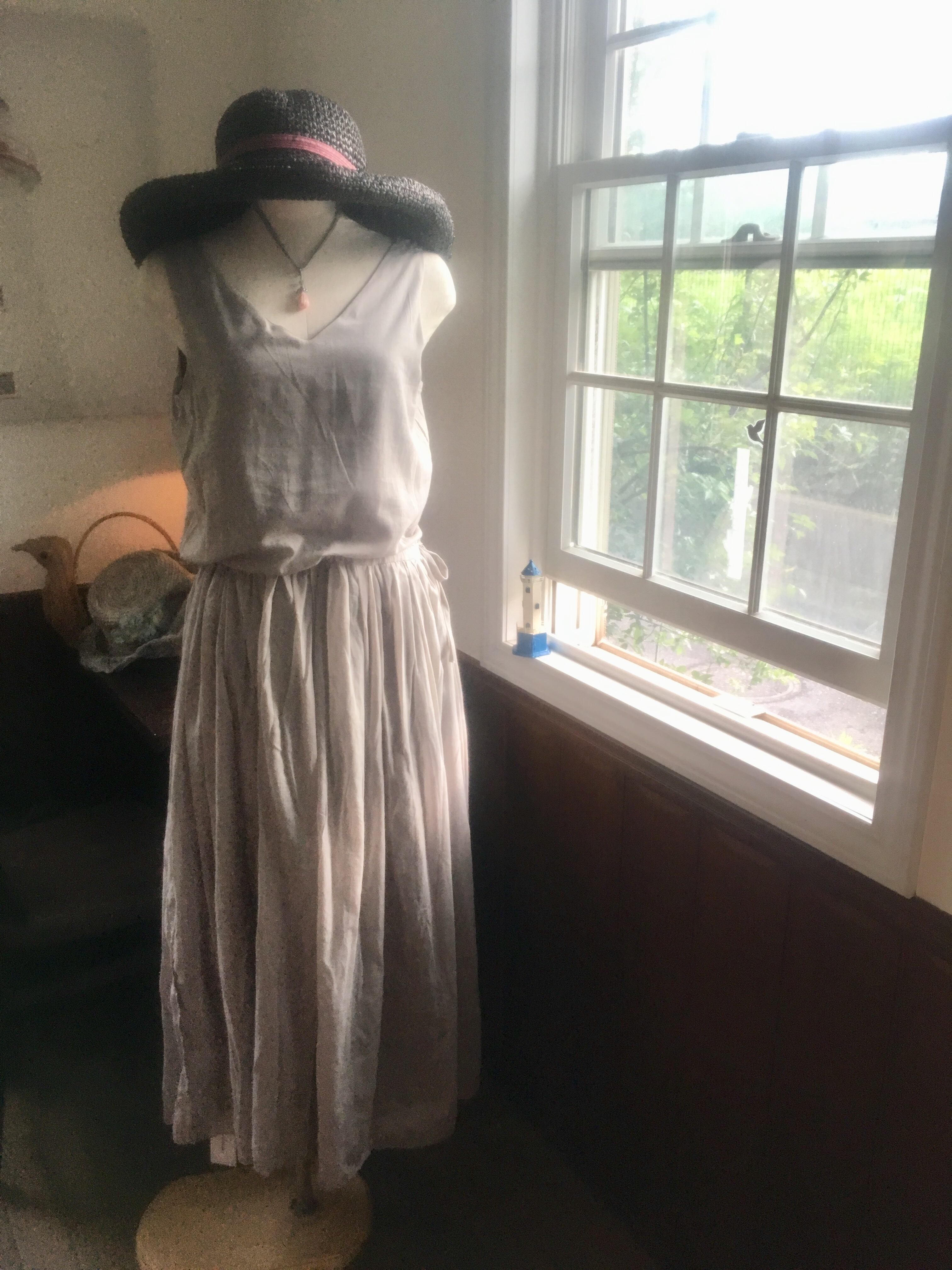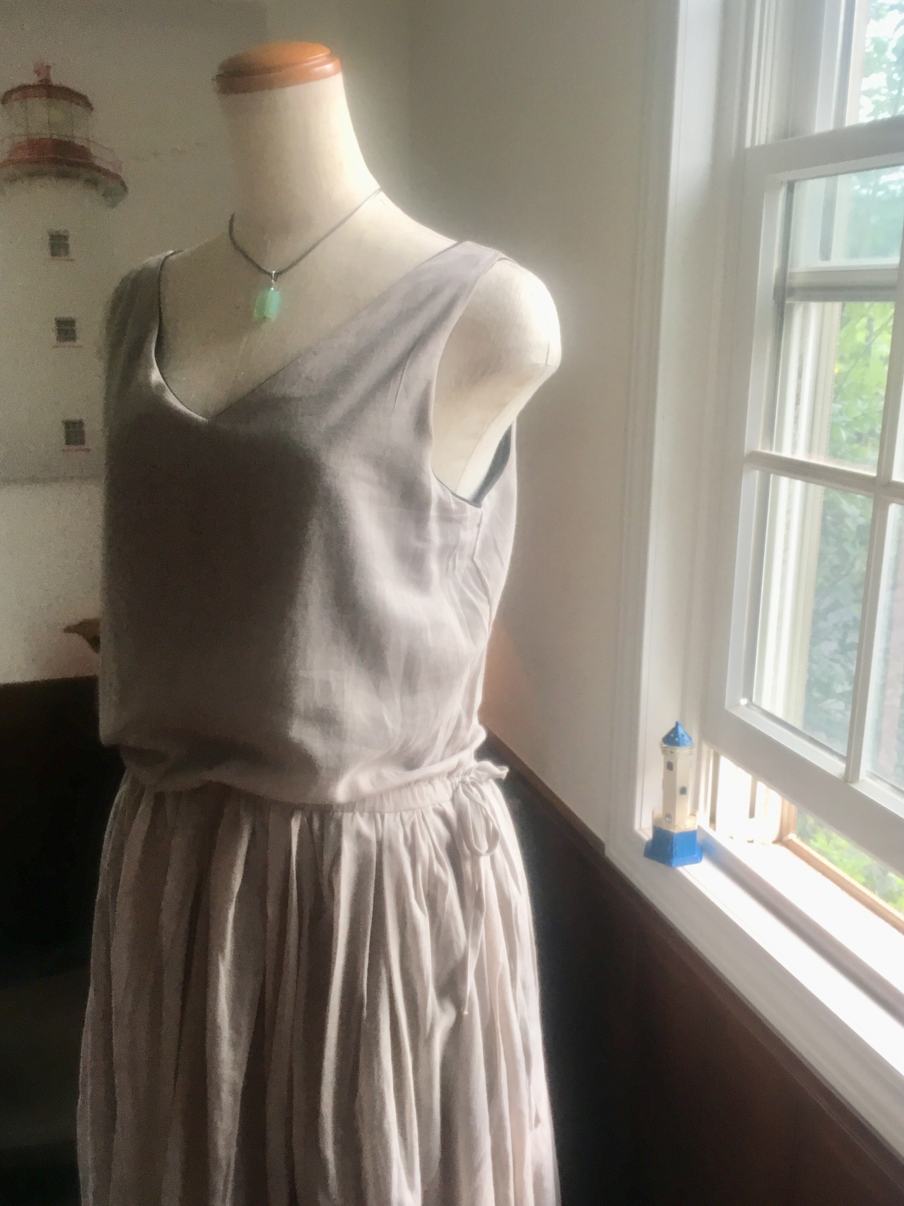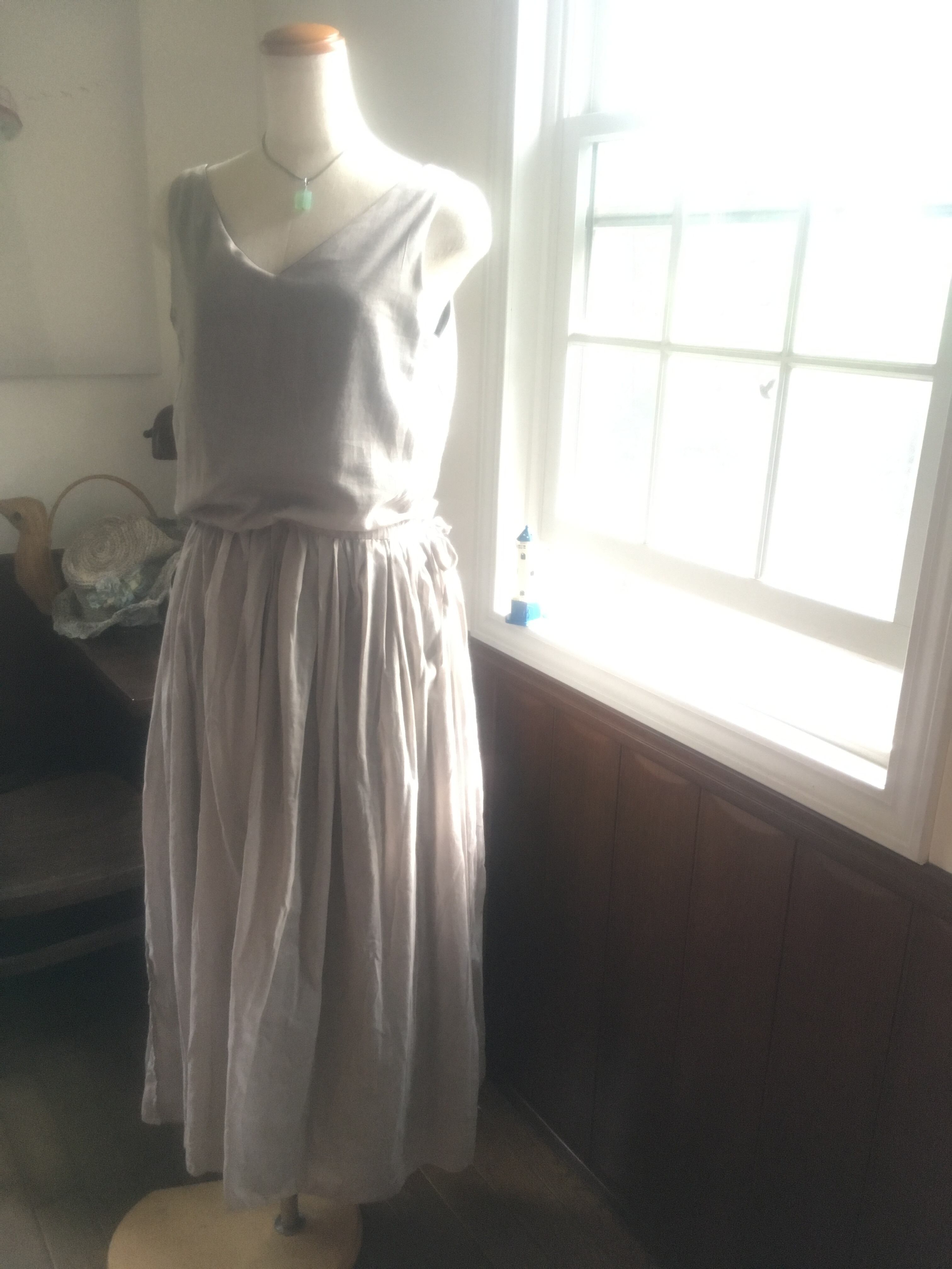 blackを表に着ると、裾にlight grayが少しレイヤードになって見えます。ゆるやかなVネックも胸元と背中を美しく見せてくれます。