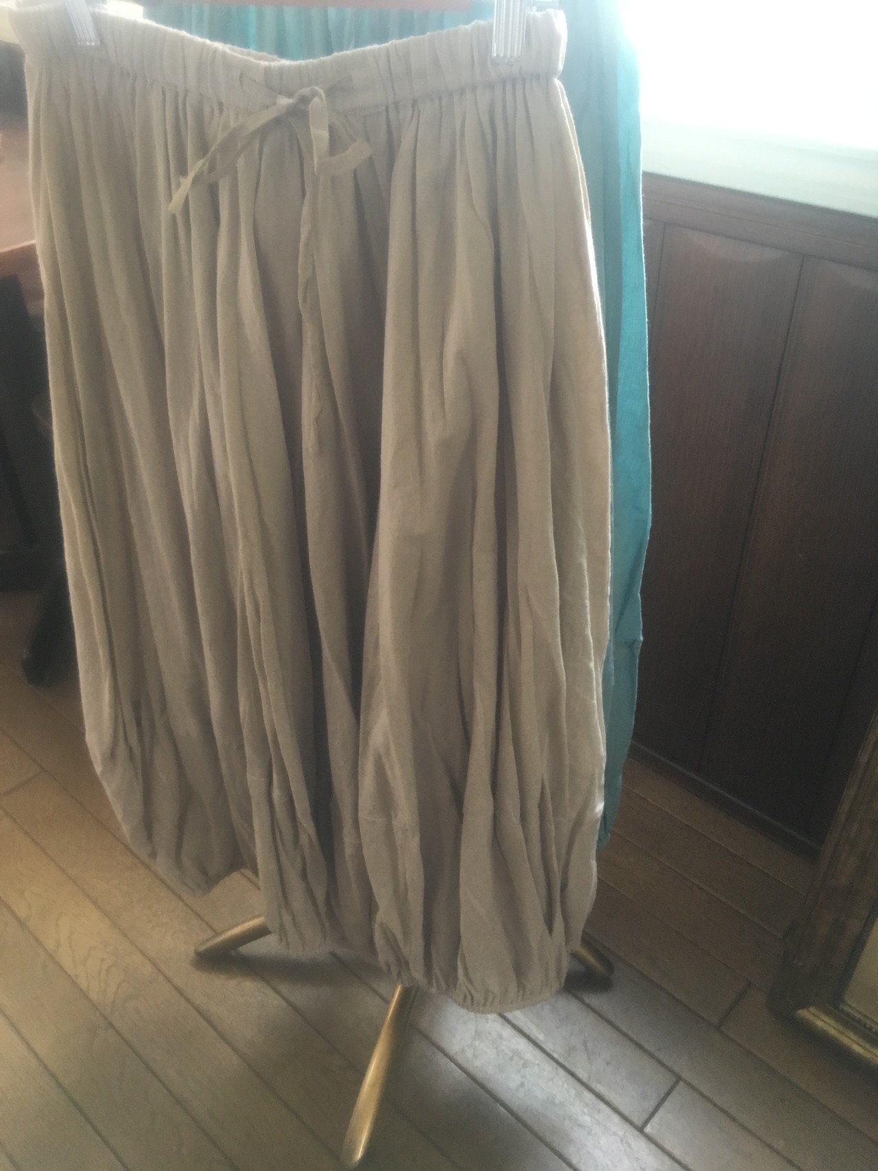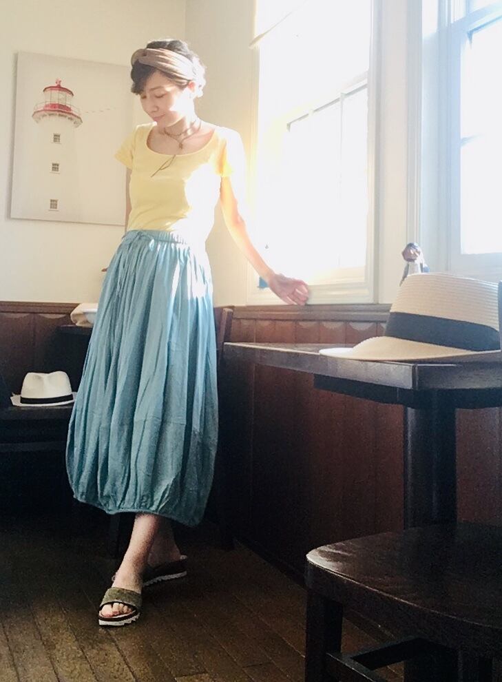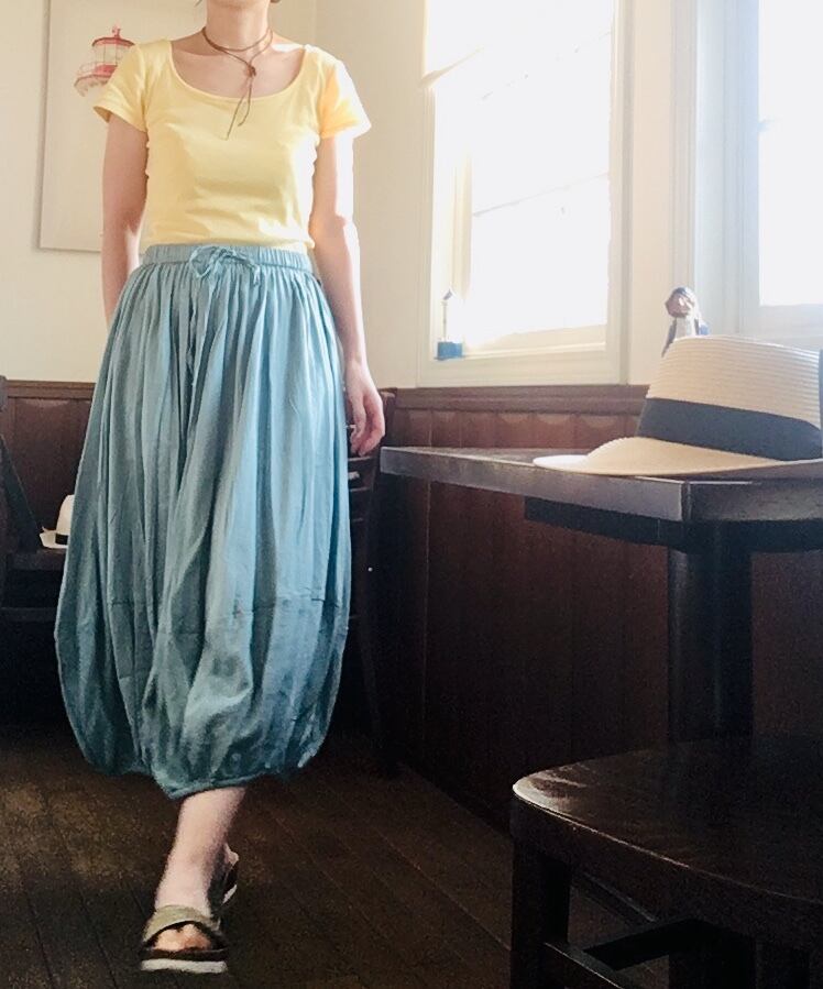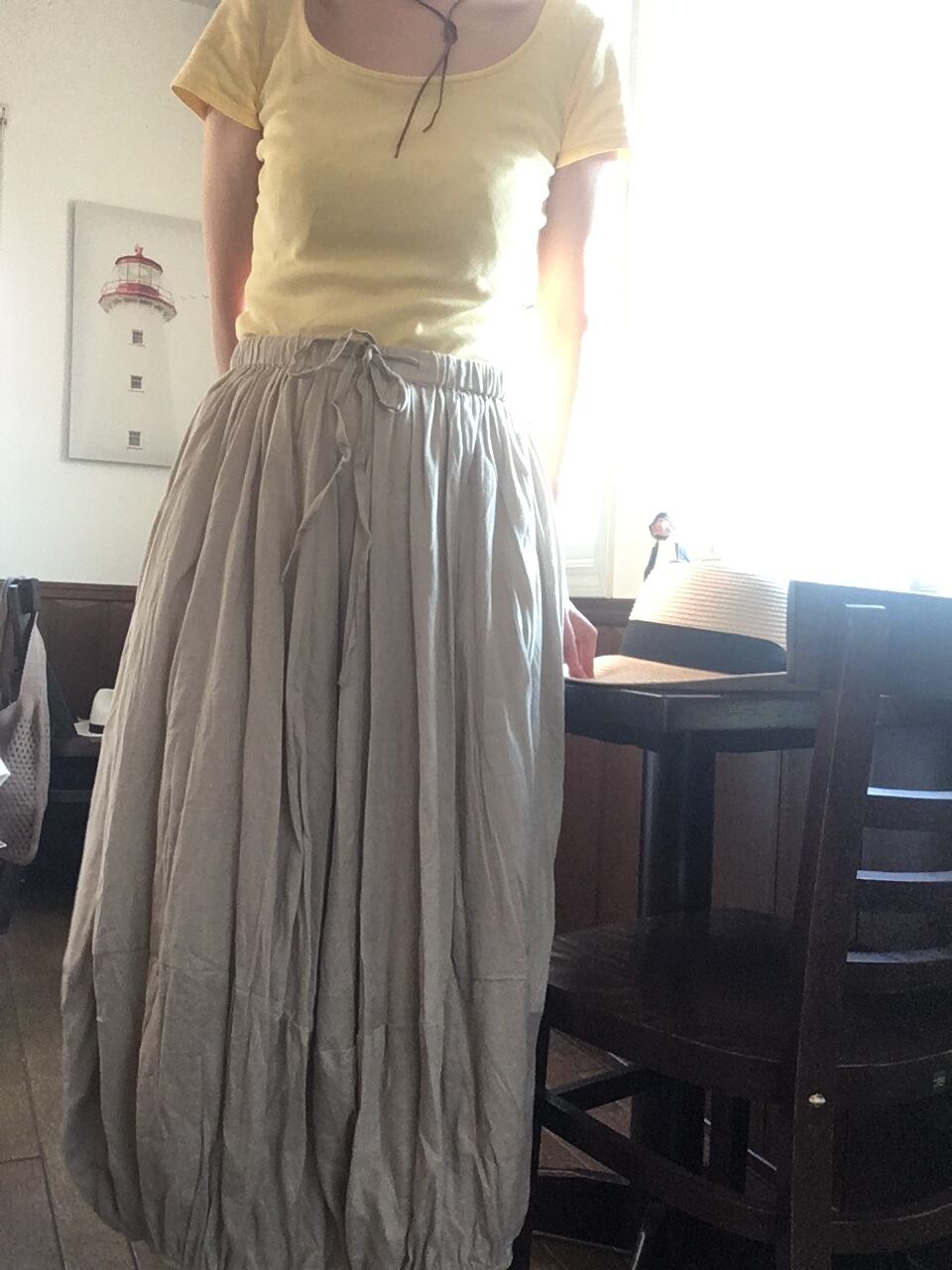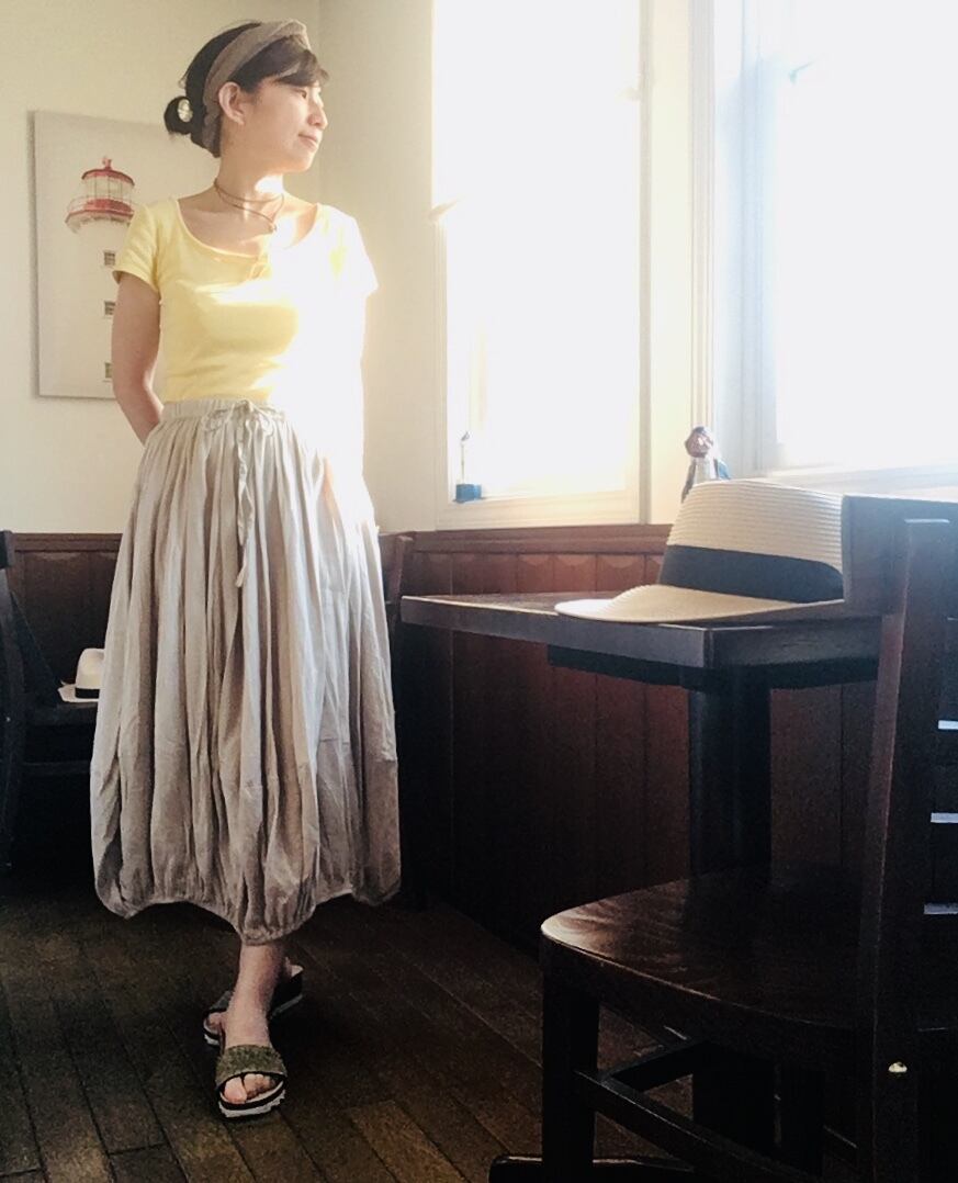 ふんわりシルエットがキュートなバルーンスカート。素材はやわらかなコットンが2重ガーゼのようになっています。裾にもゴムが入っていて、かぼちゃのようなシルエットを作り、広がらないのもいい感じです。一枚加えると個性的な雰囲気をもたらしてくれます。