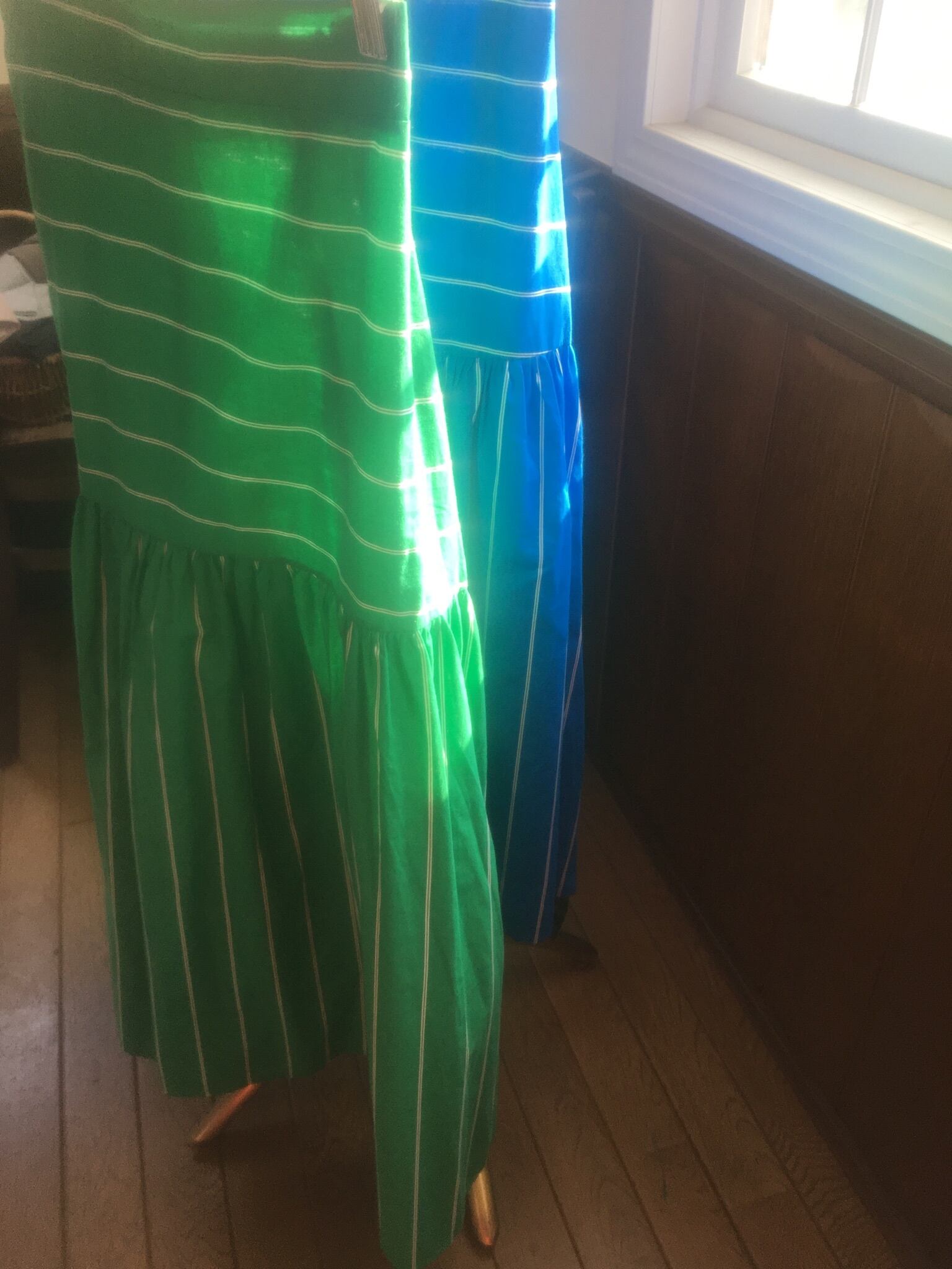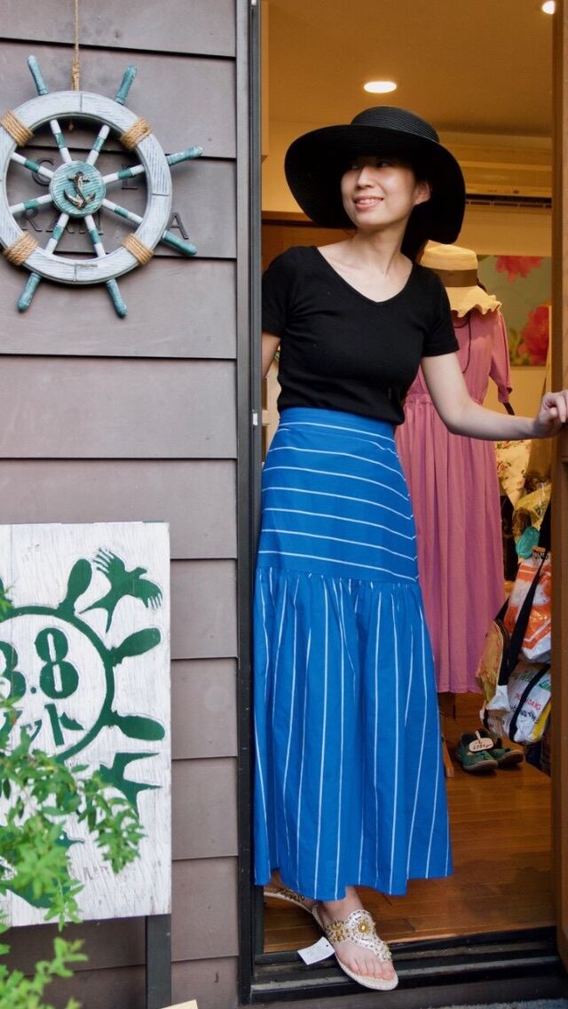 どこかラテンの国のエキゾチックな雰囲気を感じるビビッドカラーのロングスカート。ハイウエストで、脚長効果抜群。ボーダーとストライプの組み合わせがよりスタイルアップしてくれます。タイトなようでいて、ウエストの後ろはゴムに仕上げており、サイドにもジッパーがあるので、締め付け感もあまりありません。コットン100%で、裏地なしで、透け感もないので、ベタつかず、快適な履き心地です。ヒラヒラしない綺麗なシルエットもクールな印象です。エレガントにもリゾートにも、スポーティーにも、様々なテイストで着こなしていただけます。