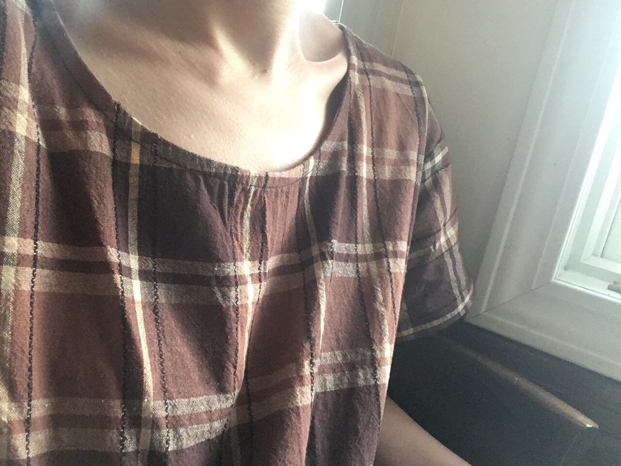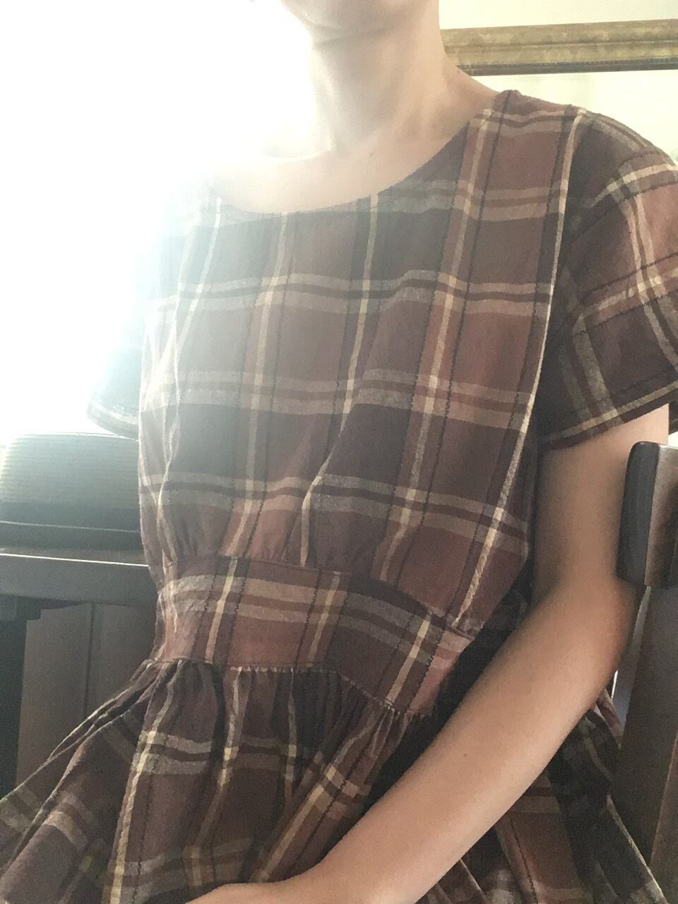 チェック柄 セピア ギャザー半袖ワンピース brown