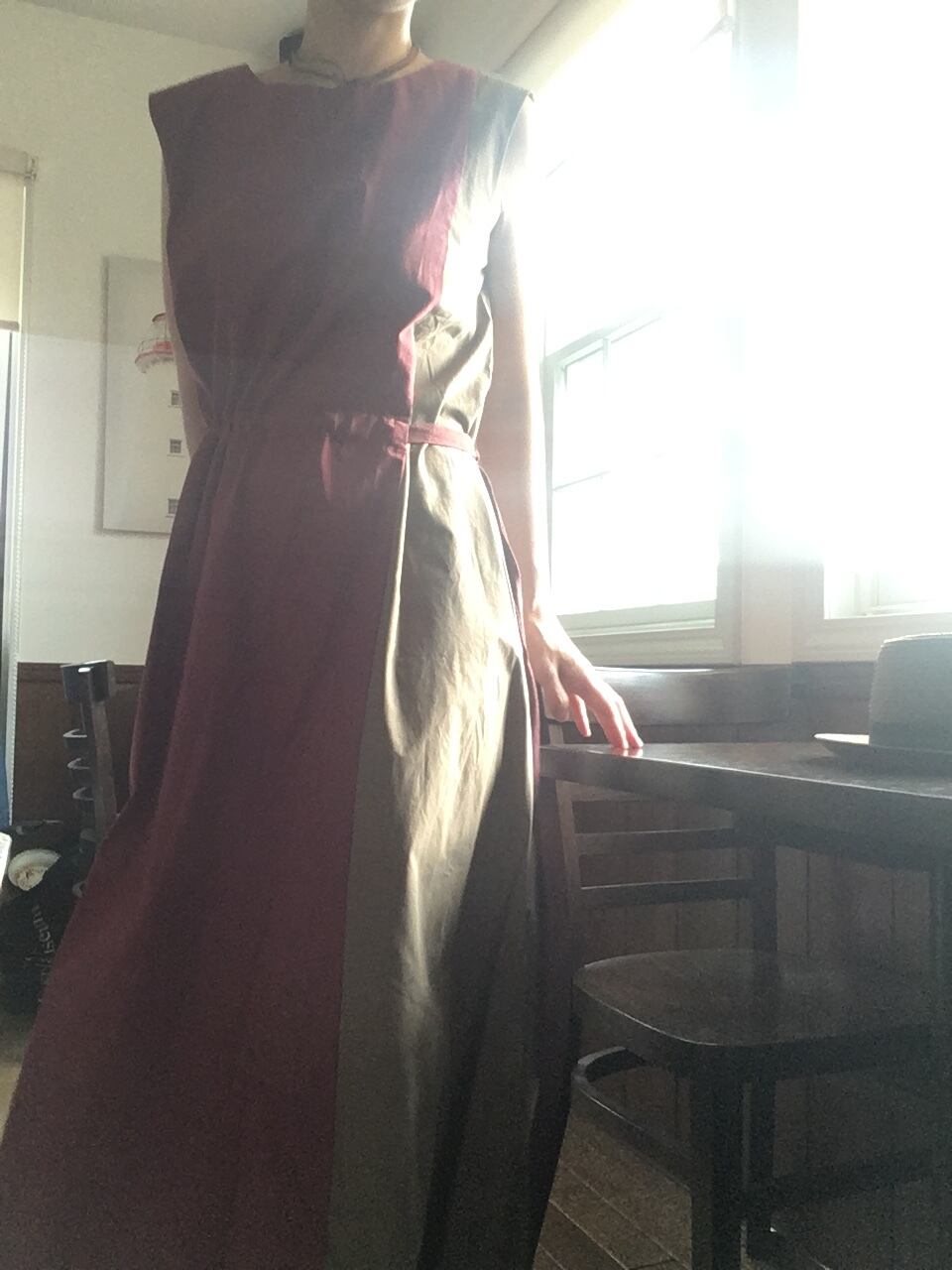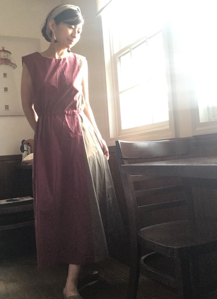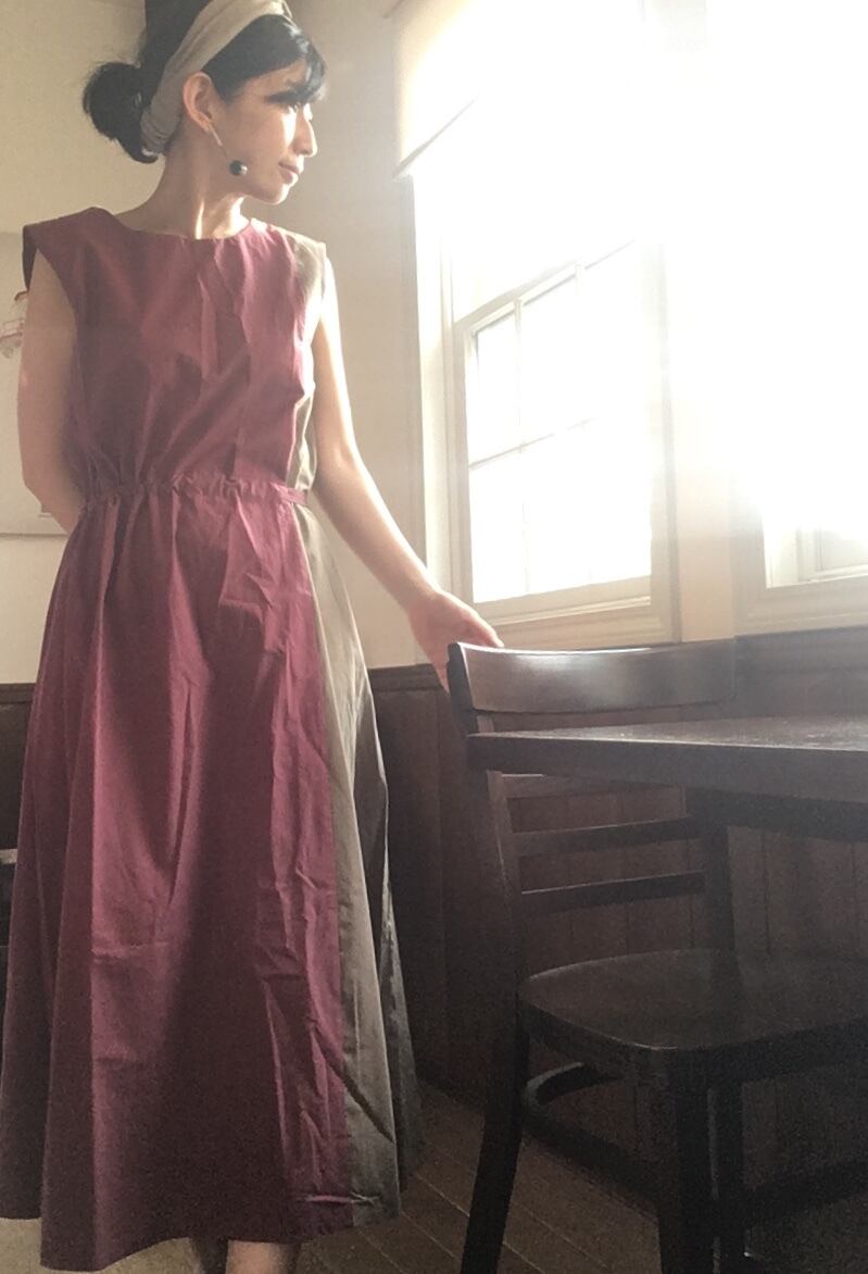 ツートンカラーサイドDカン ノースリーブワンピース wine