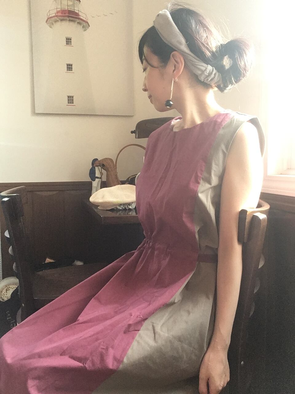 サイドの切り替えのツートンカラーがシャープでモード感を醸し出してくれるワンピース。
