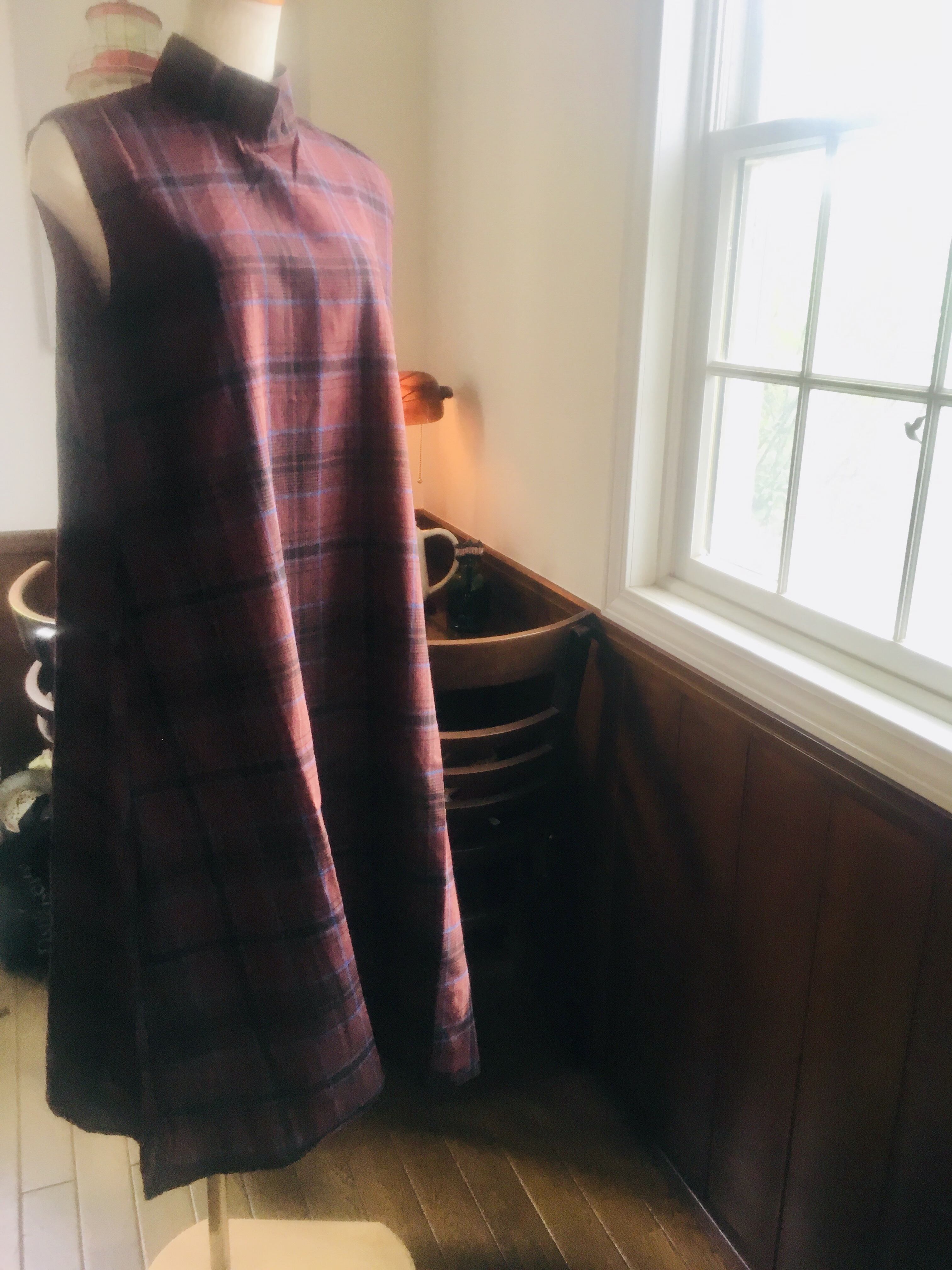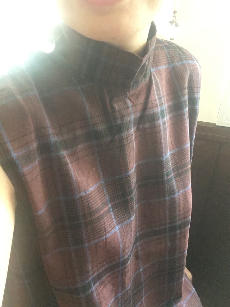 ノースリーブでありながら、赤みがかったブラウンと素材感が秋の雰囲気。