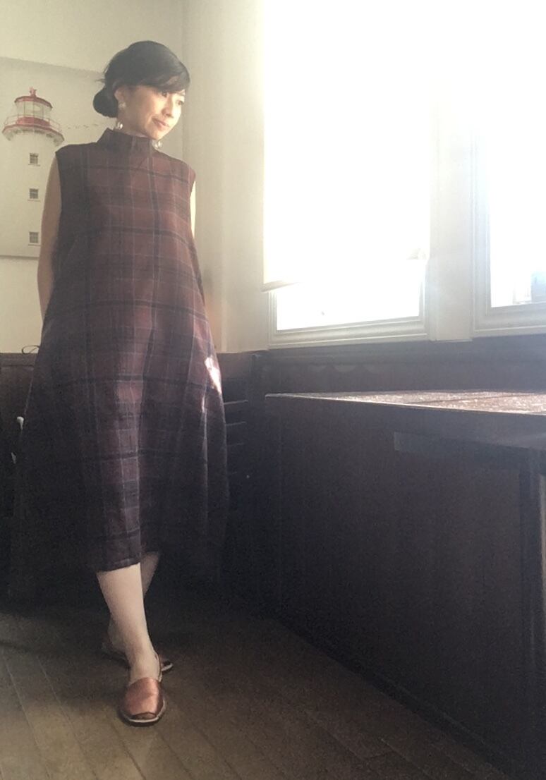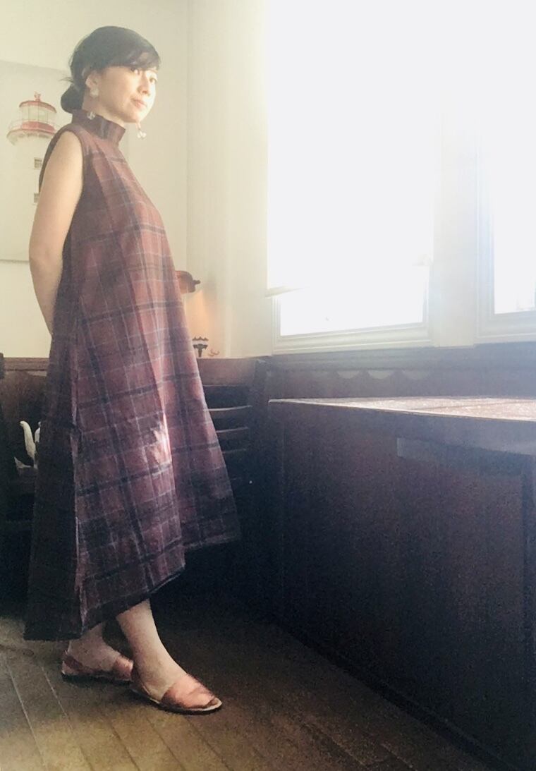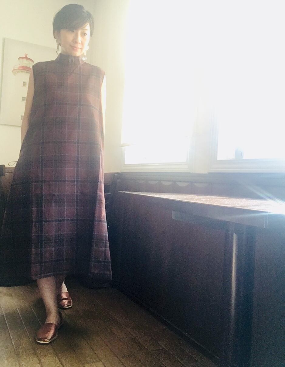 チェック柄クラシカル スタンドネック ワンピース