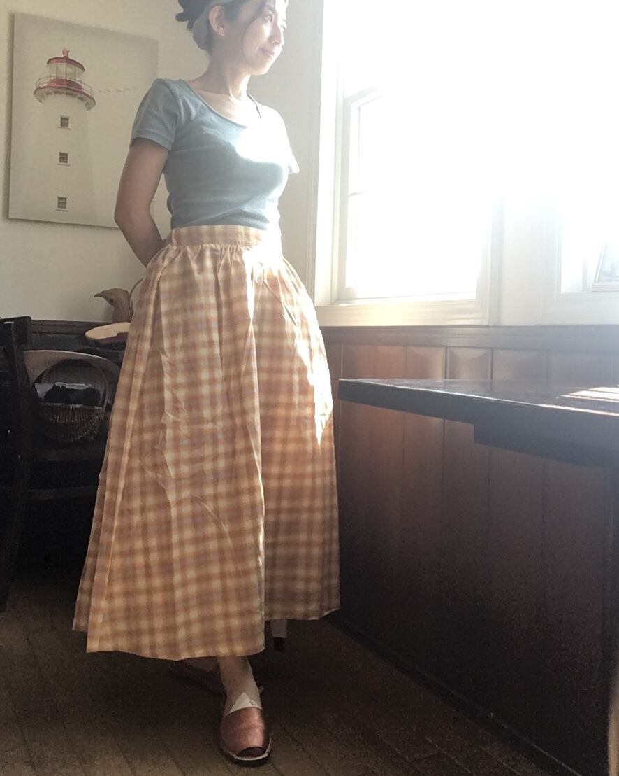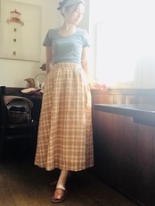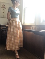 柔らかな陽射しを浴びる麦のような色合いのロングスカート。素朴なチェック柄もノスタルジックな雰囲気。ちょっとカントリーガール気分で!スニーカーなどでカジュアルはもちろん、レースアップシューズや、ブーツを合わせてみても。