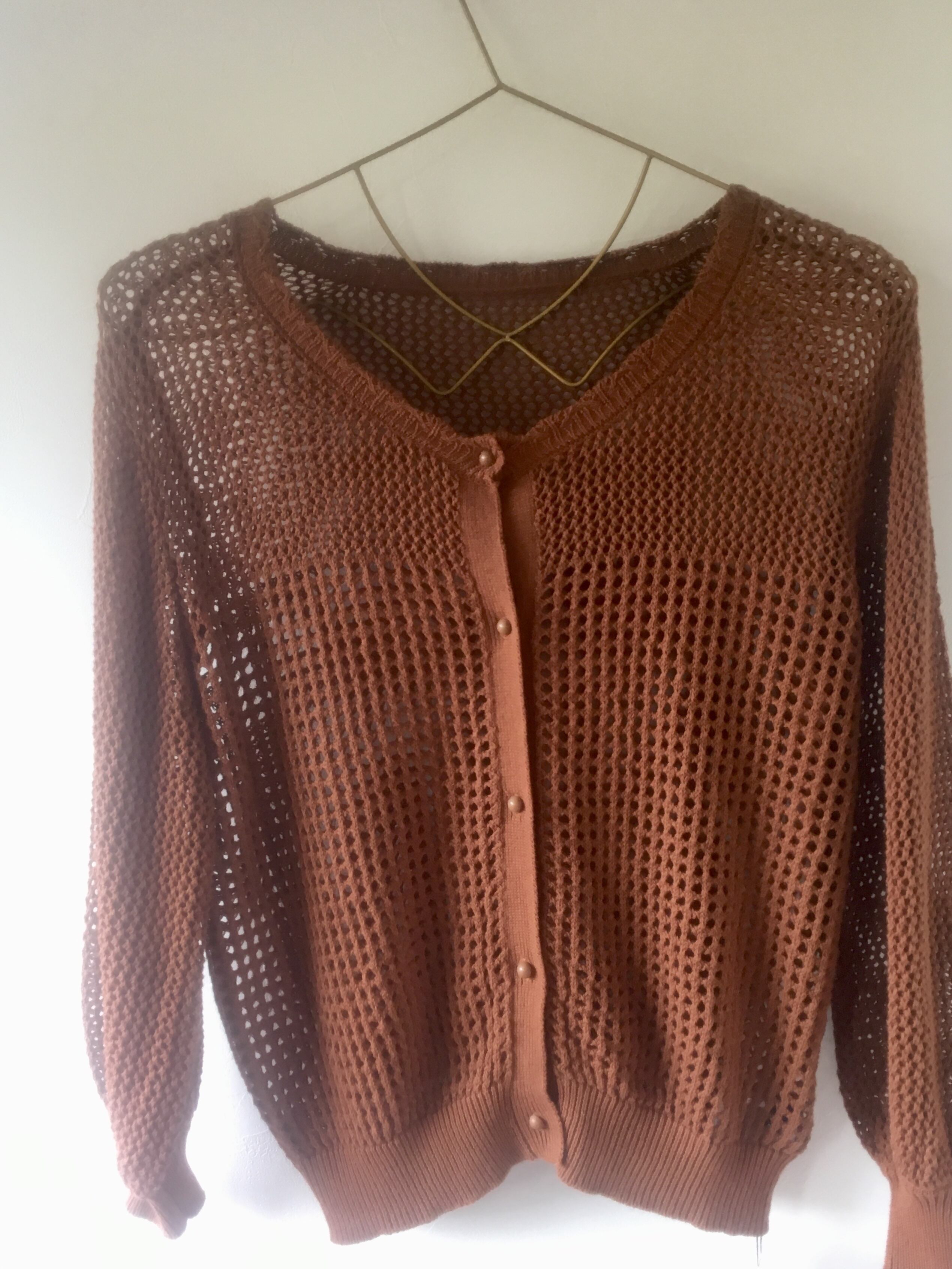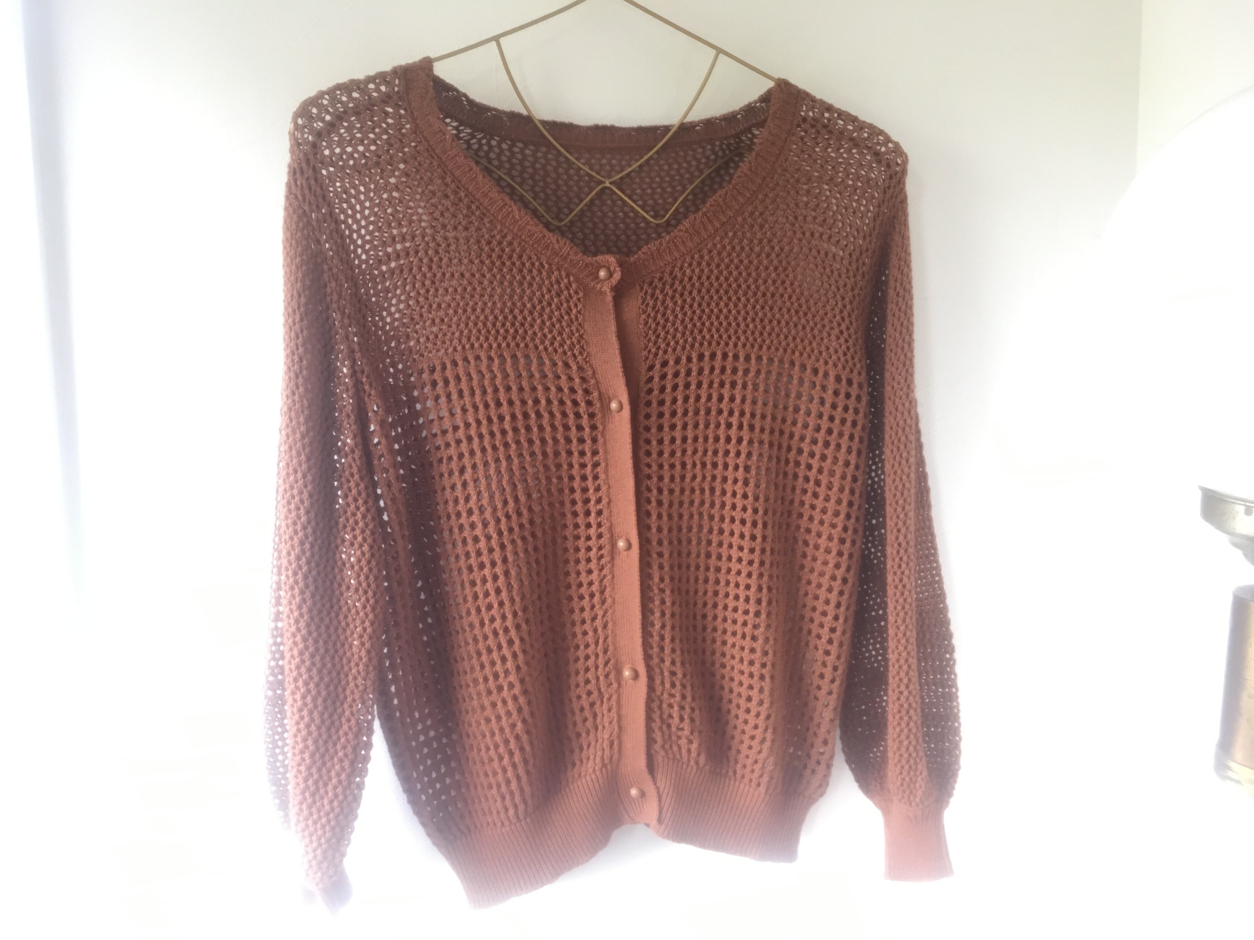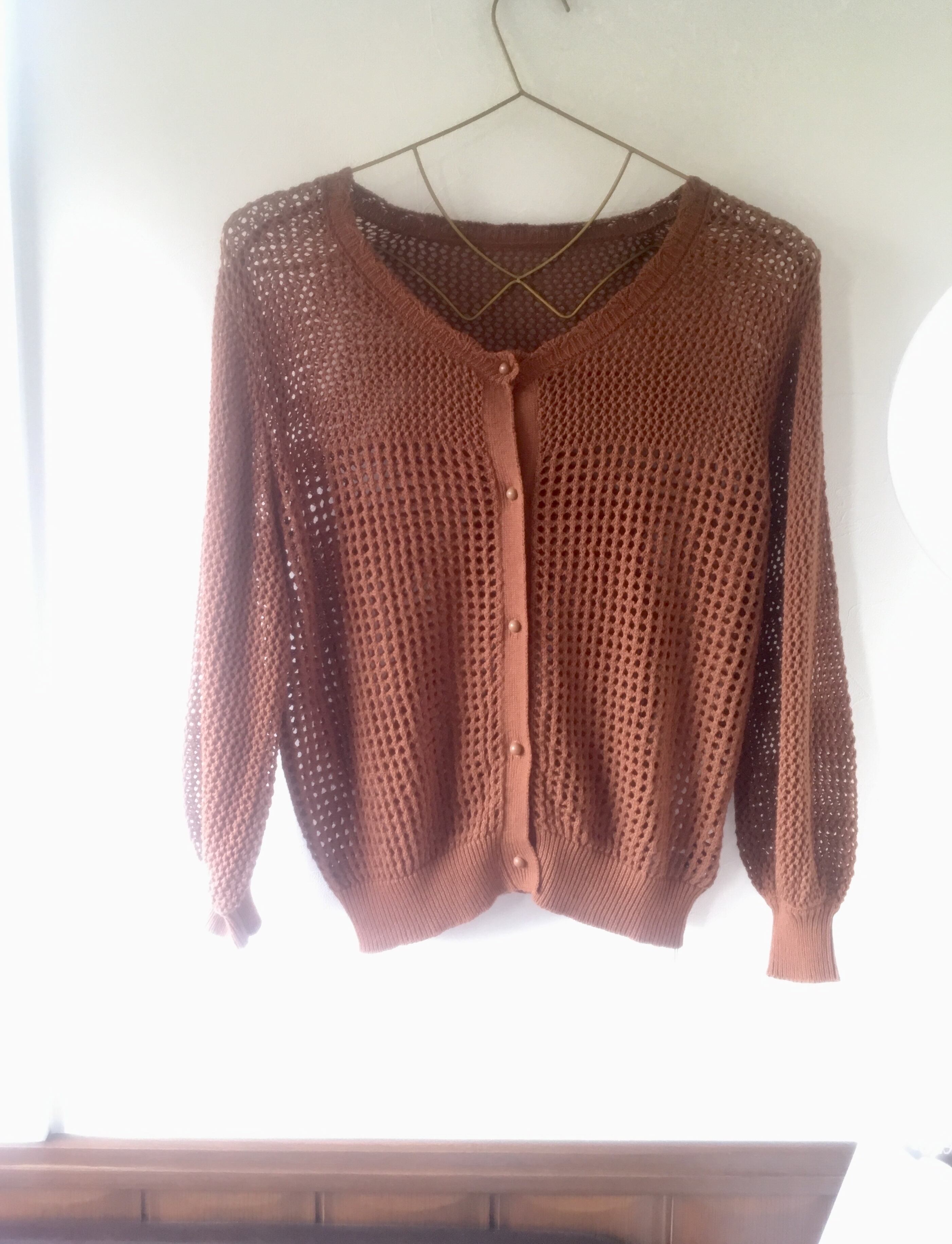 メッシュ編み コットンカーディガン brown