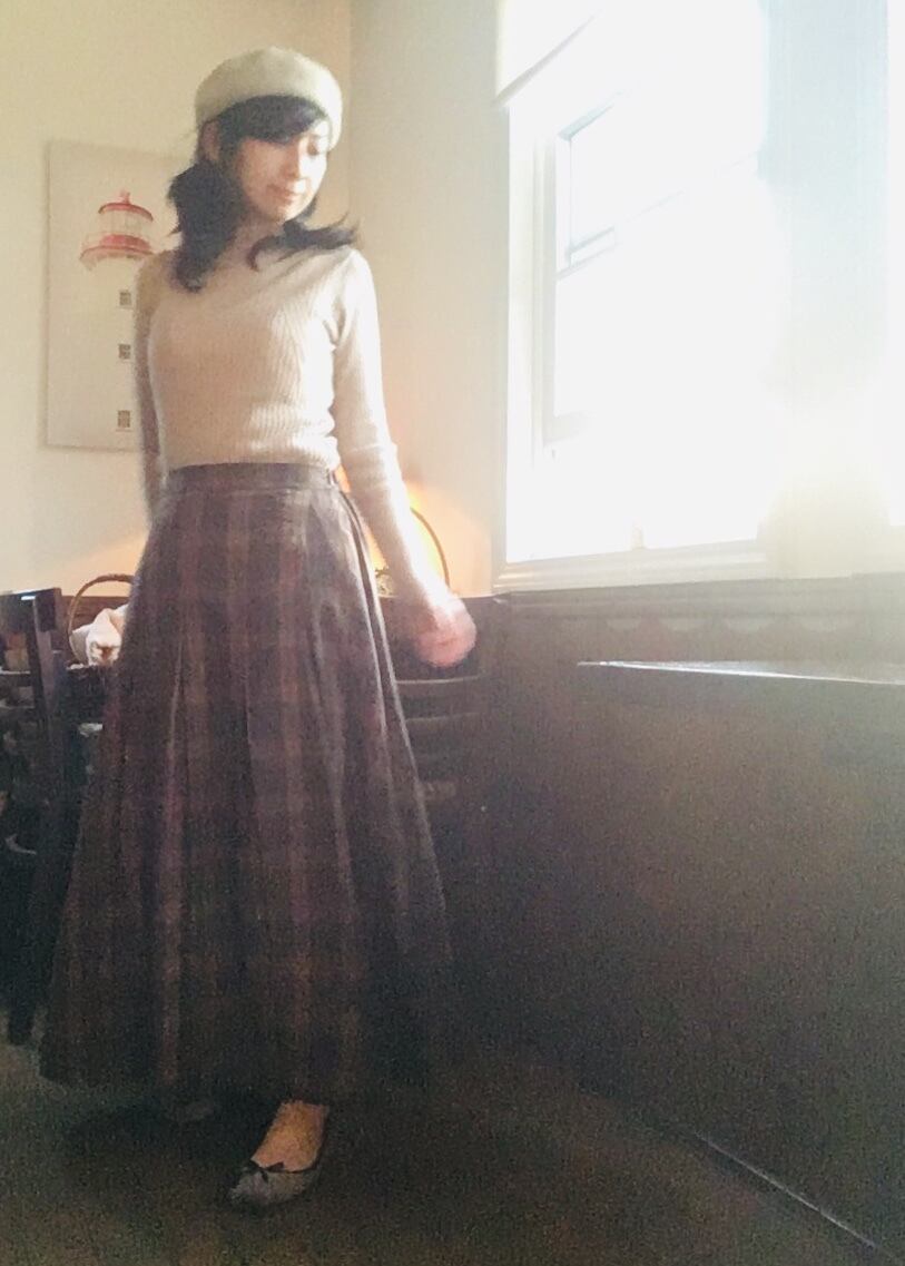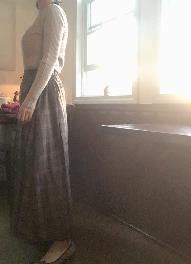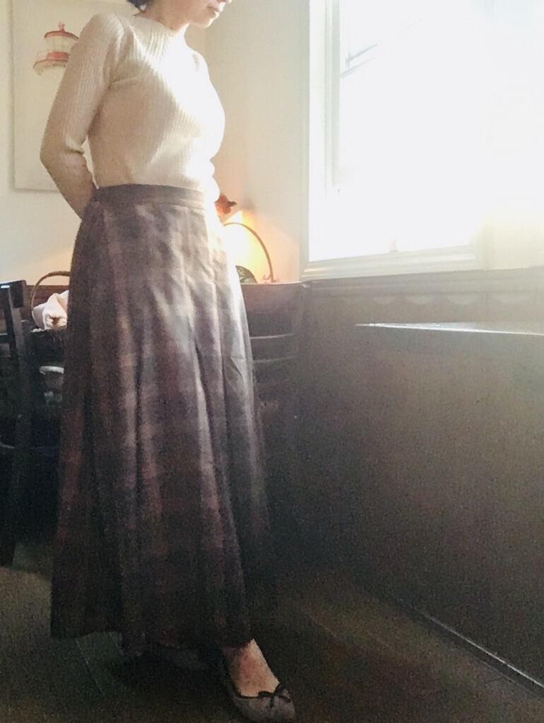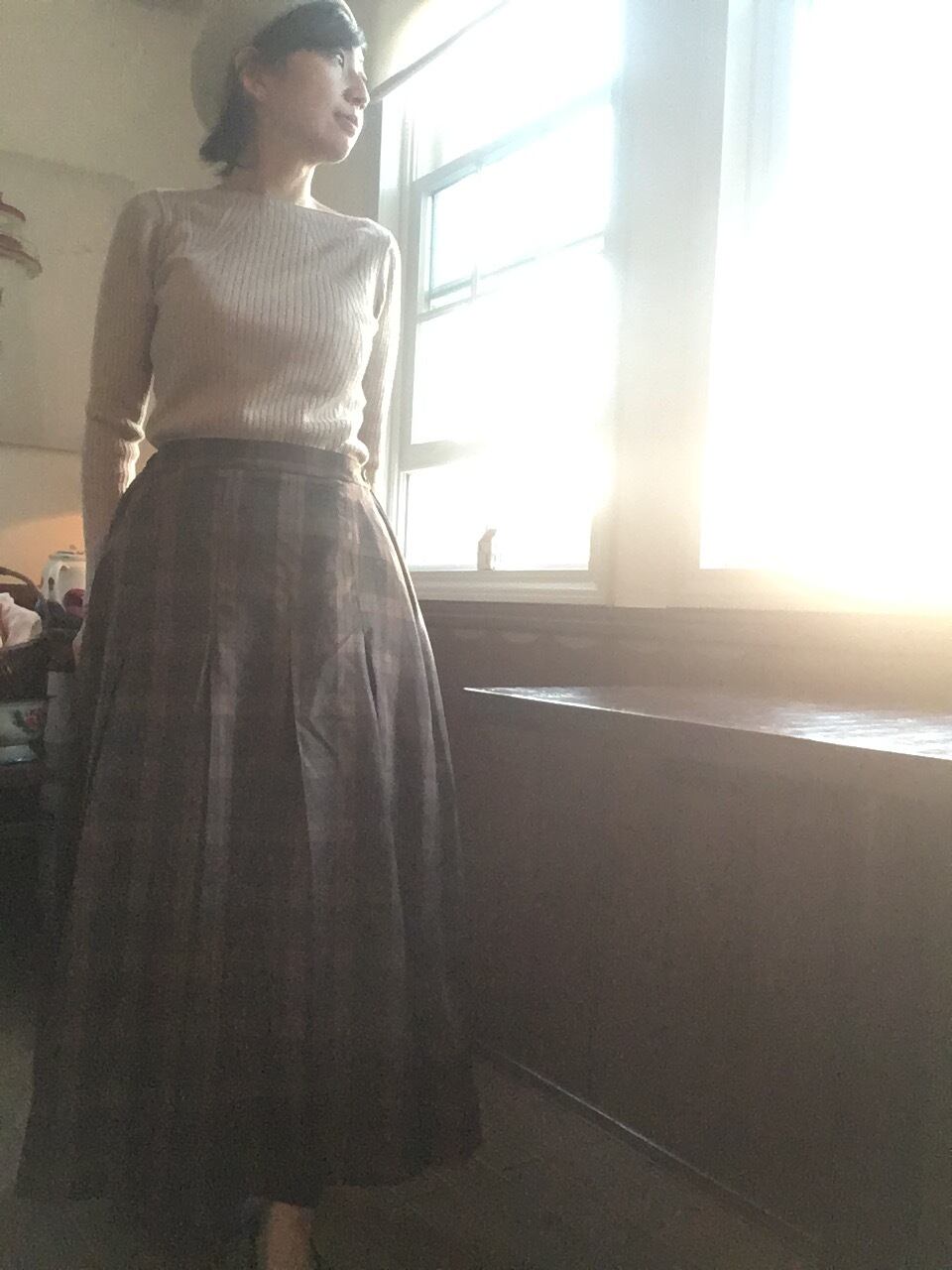 落ち着いたブラウン系のグラデーションのチェック柄が大人っぽくクラシカルな雰囲気。サラッとした素材感で重たくなく、秋、冬、春…と着ていただけます。タックがほどよいボリュームを出し、エレガントでいて、動きやすいのも魅力です。