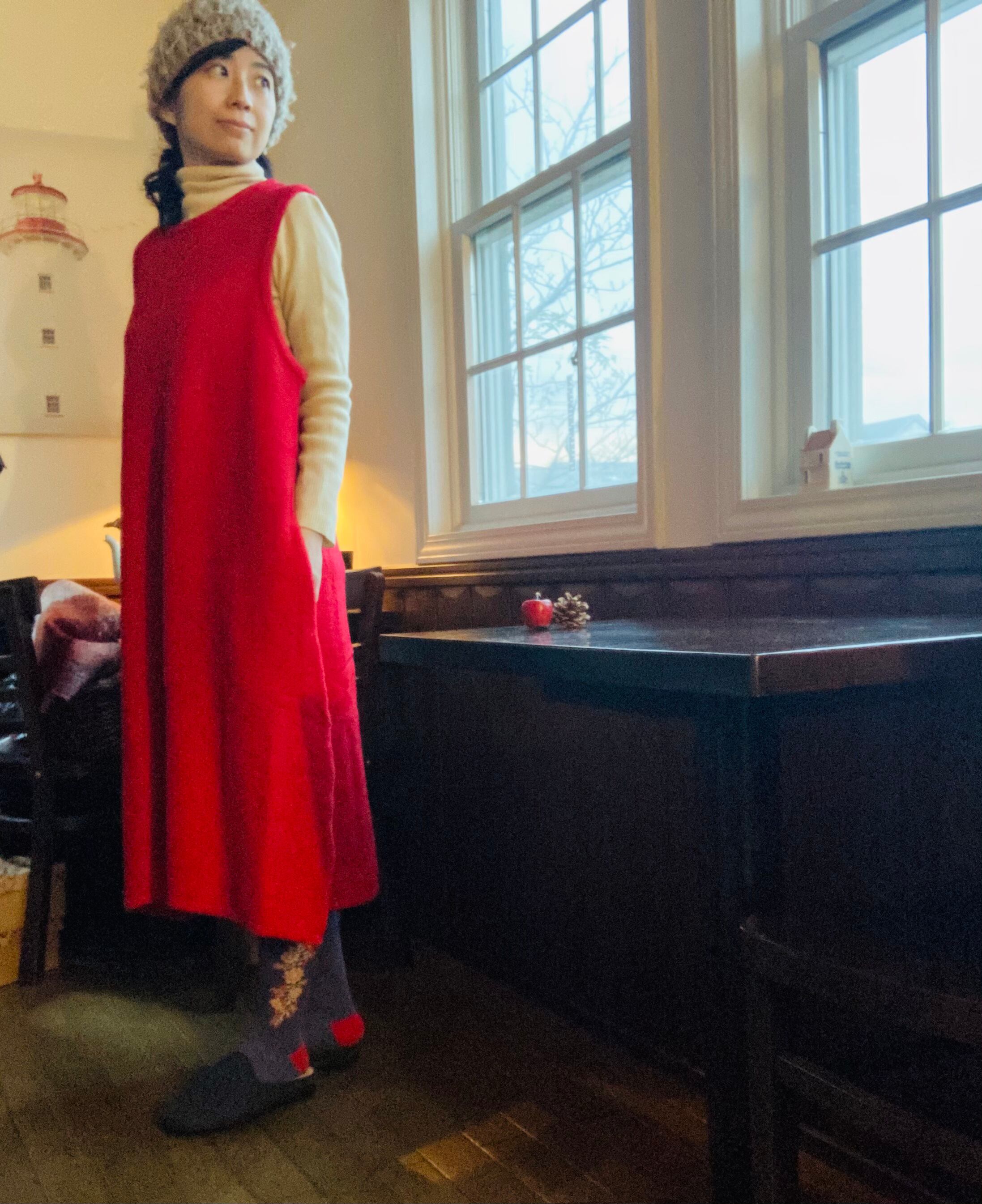 柔らかな風合いと、綺麗な赤がいっそう温かみを感じさせてくれます。ノスタルジックでメルヘンな冬の気分へと誘います。