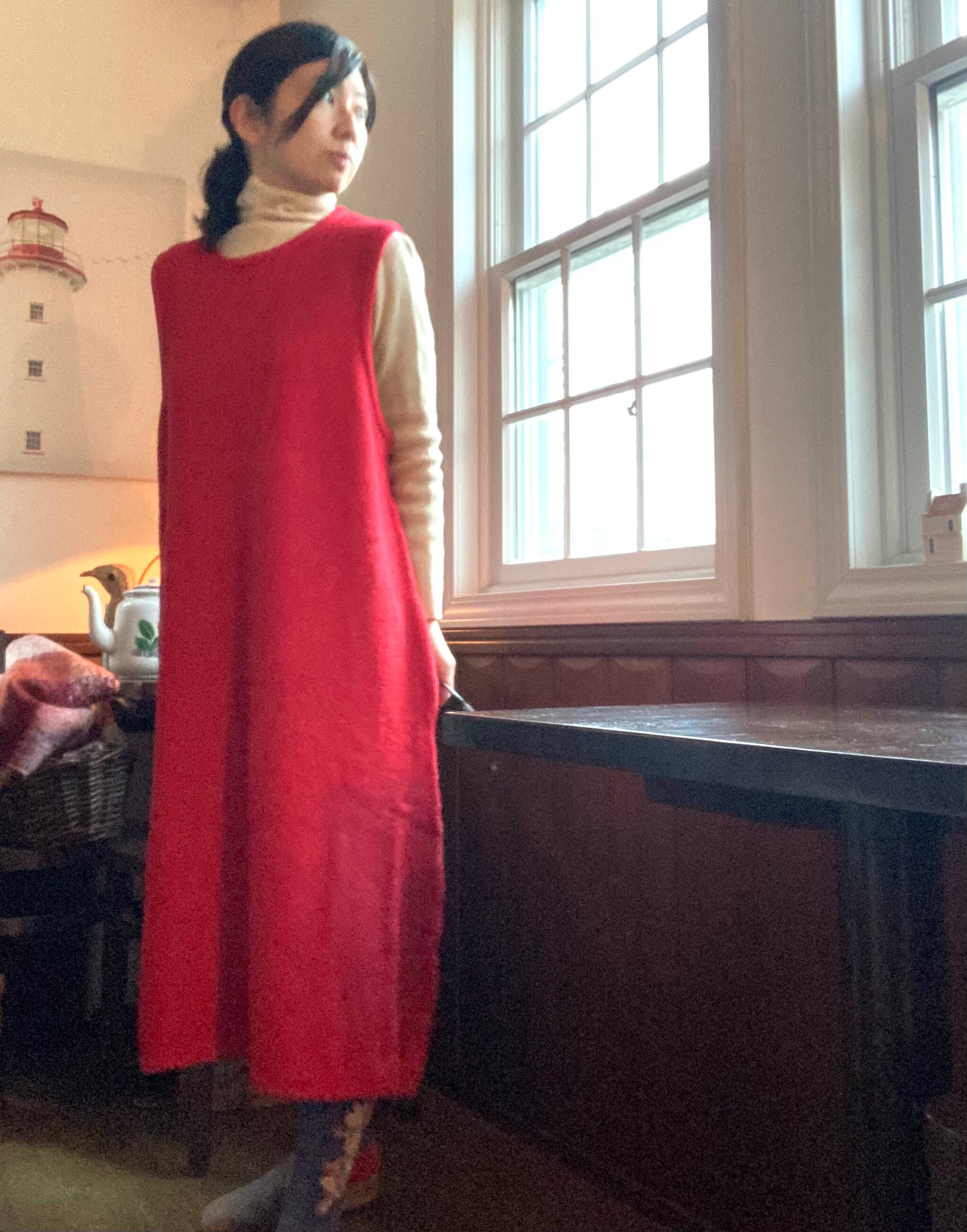 ニットクルーネックワンピース red