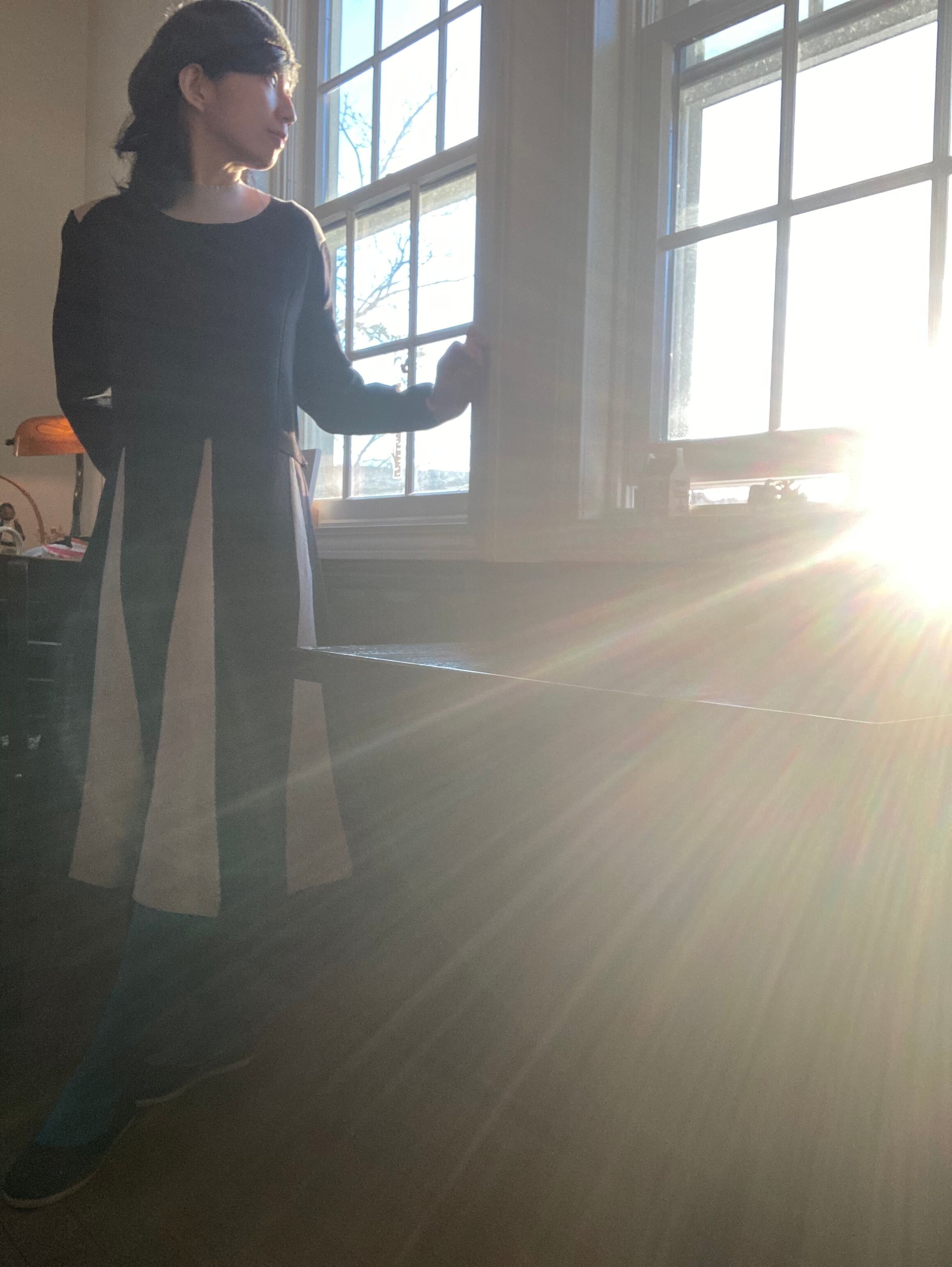 上半身はすっきりしているので、アウターももたつかず重ね着も便利です。
