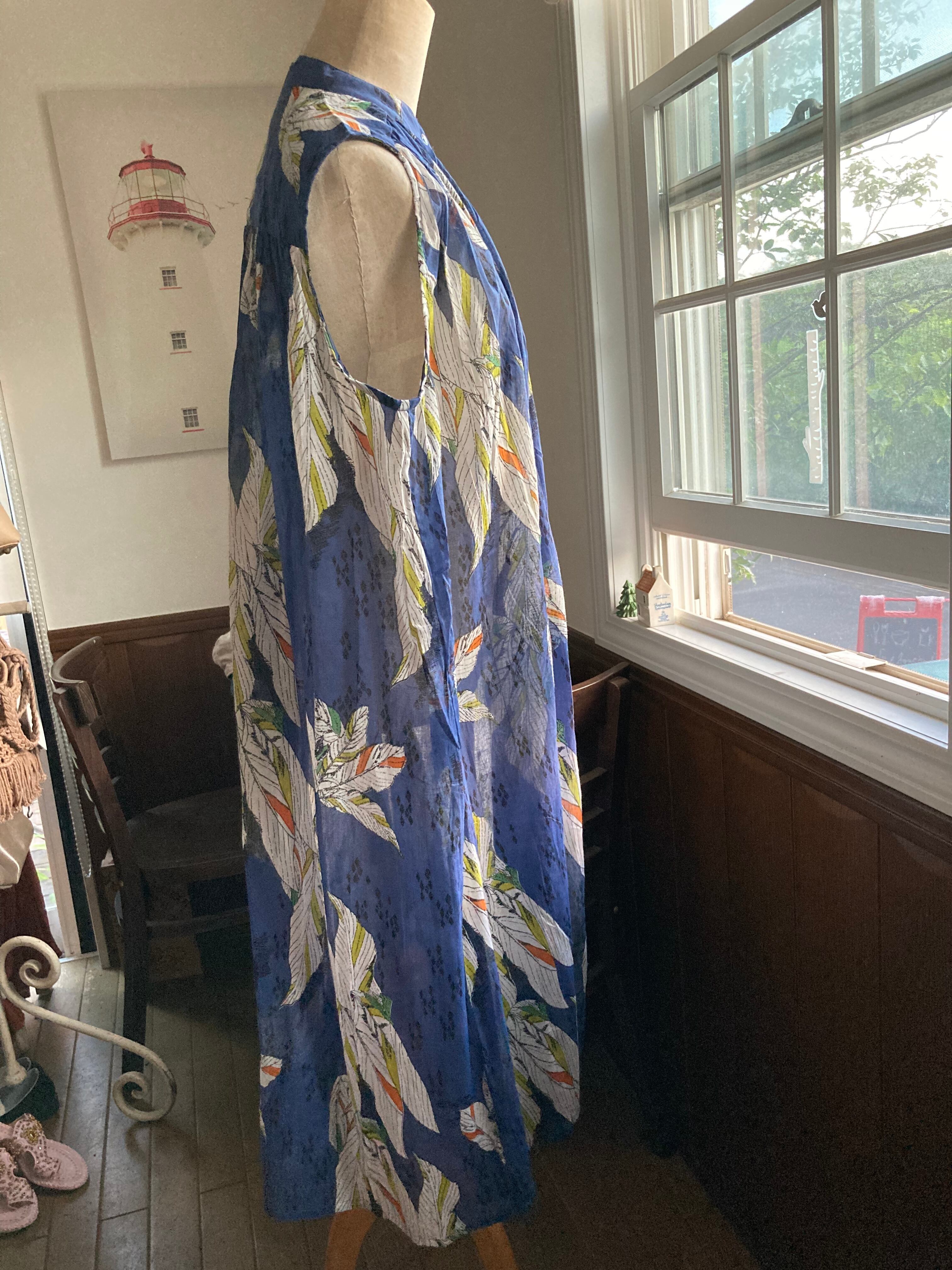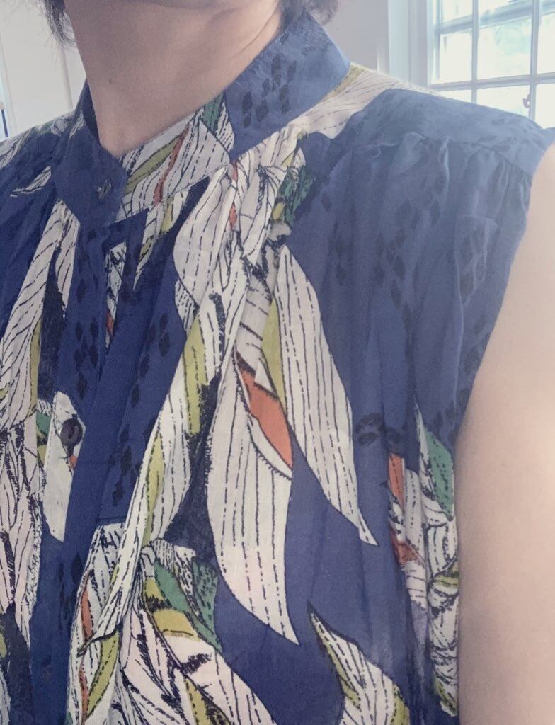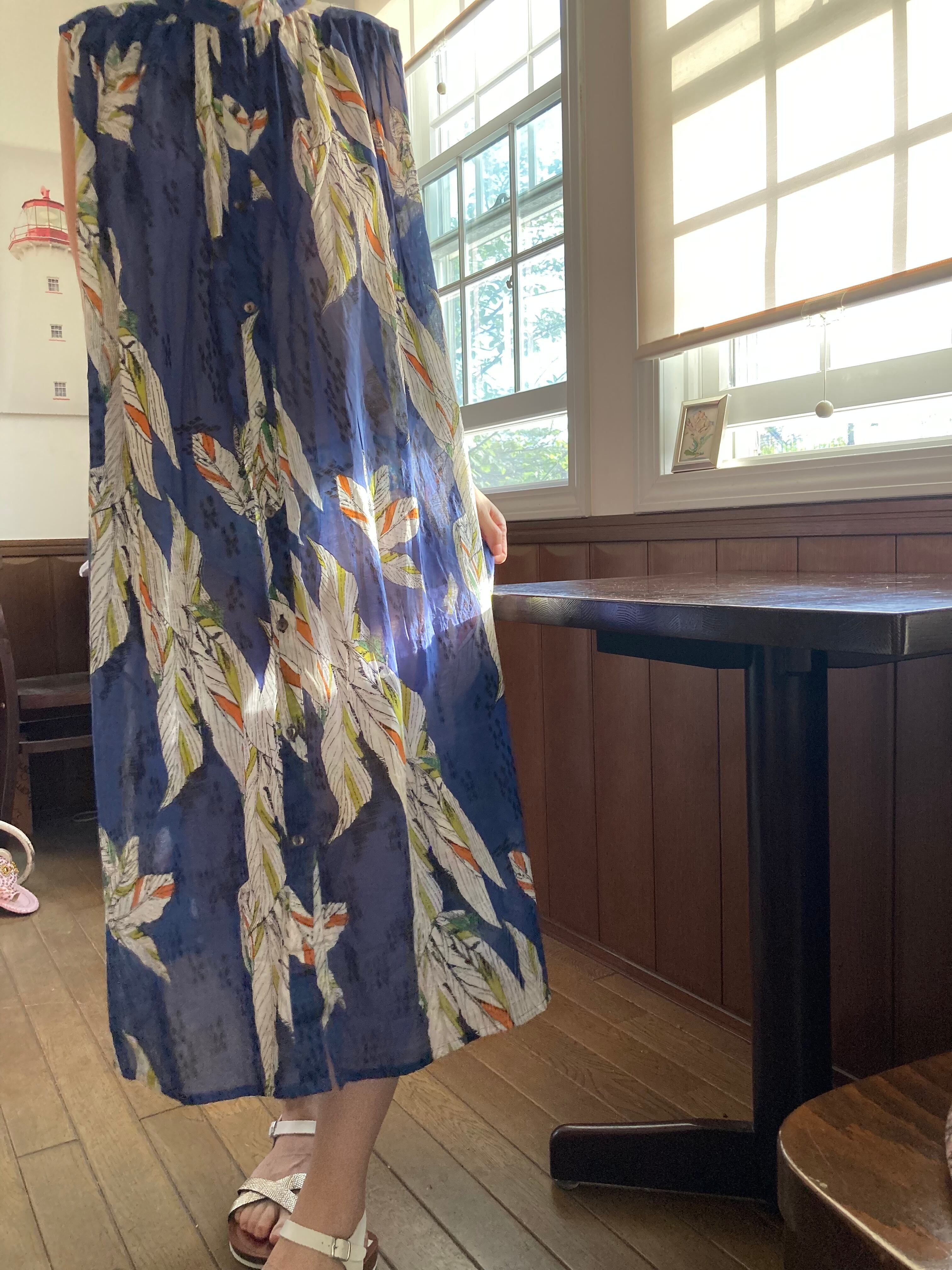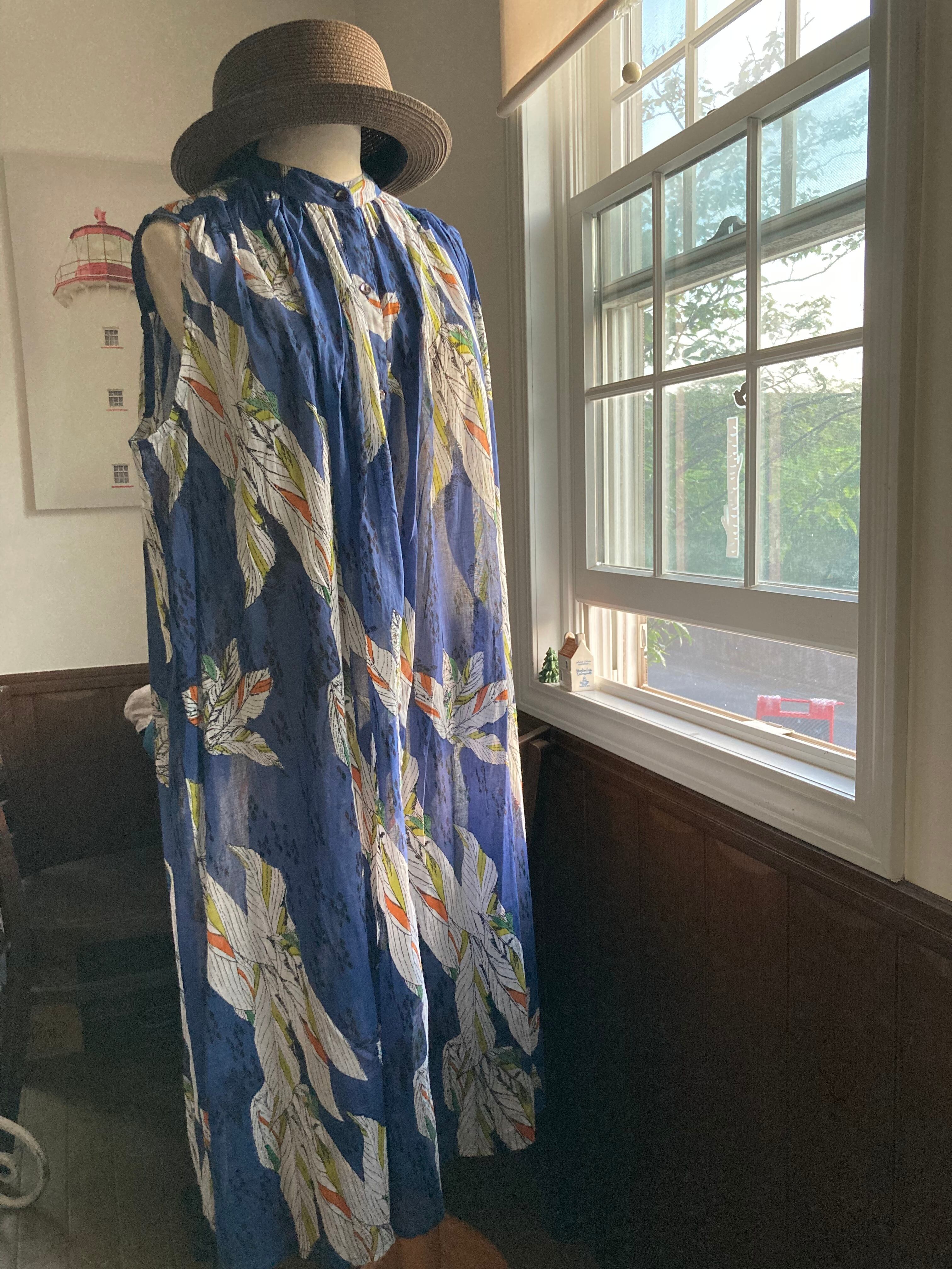スパイシーな色合いのリーフ柄が流線型を描き、リゾート感漂うワンピース。溜まったクルーネックの襟元や肩からのギャザーからの落ち感、ノースリーブが、クールでありながらも凛とした大人の女性の雰囲気をまといます。