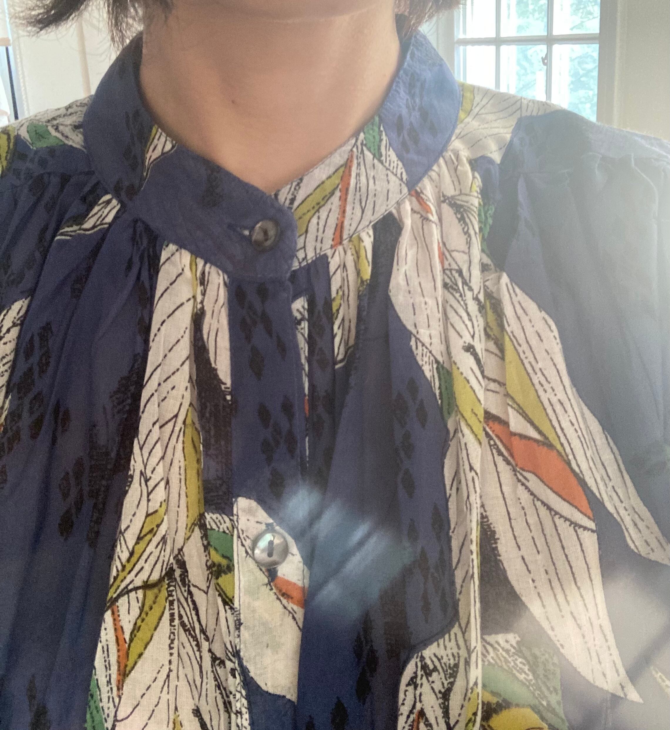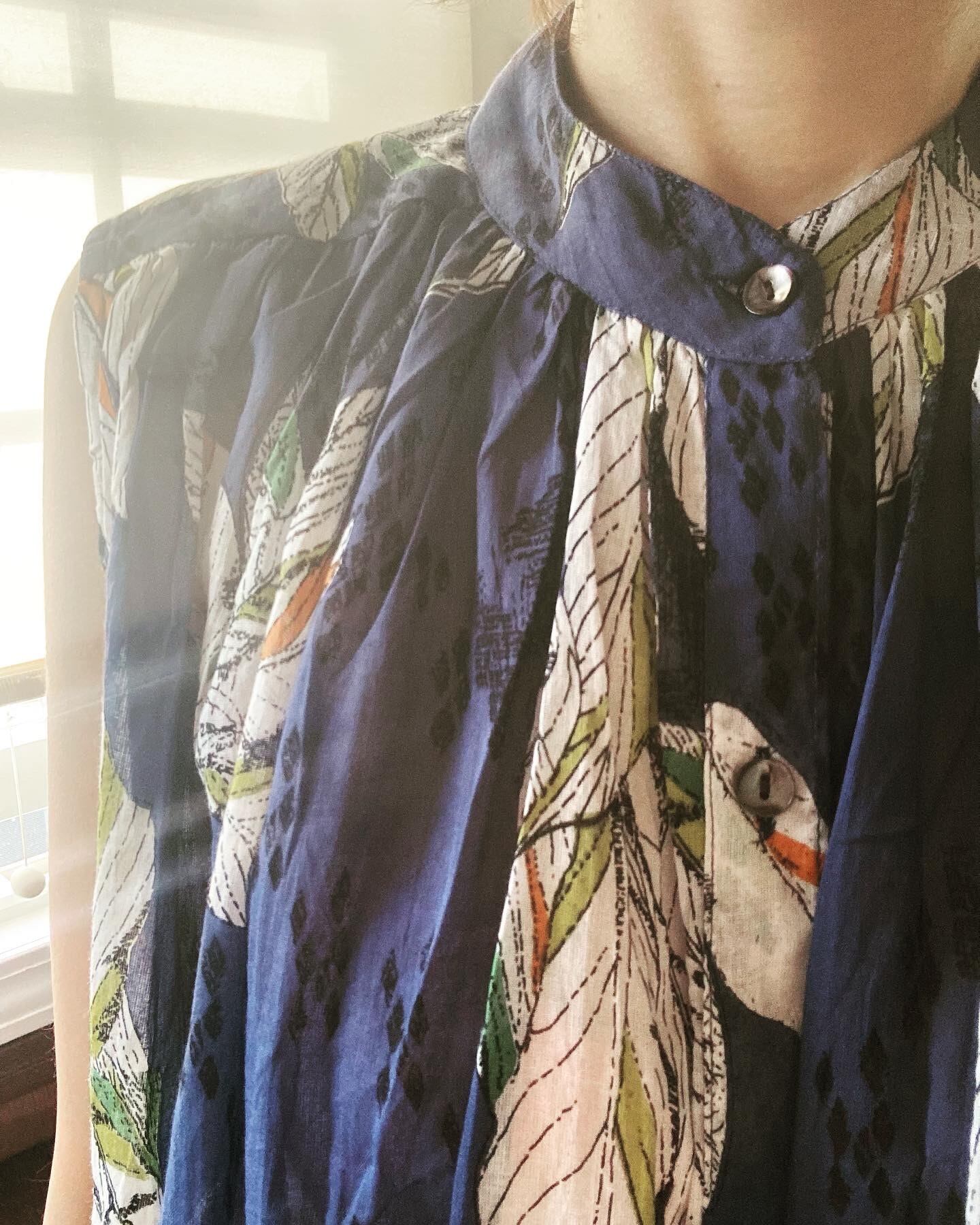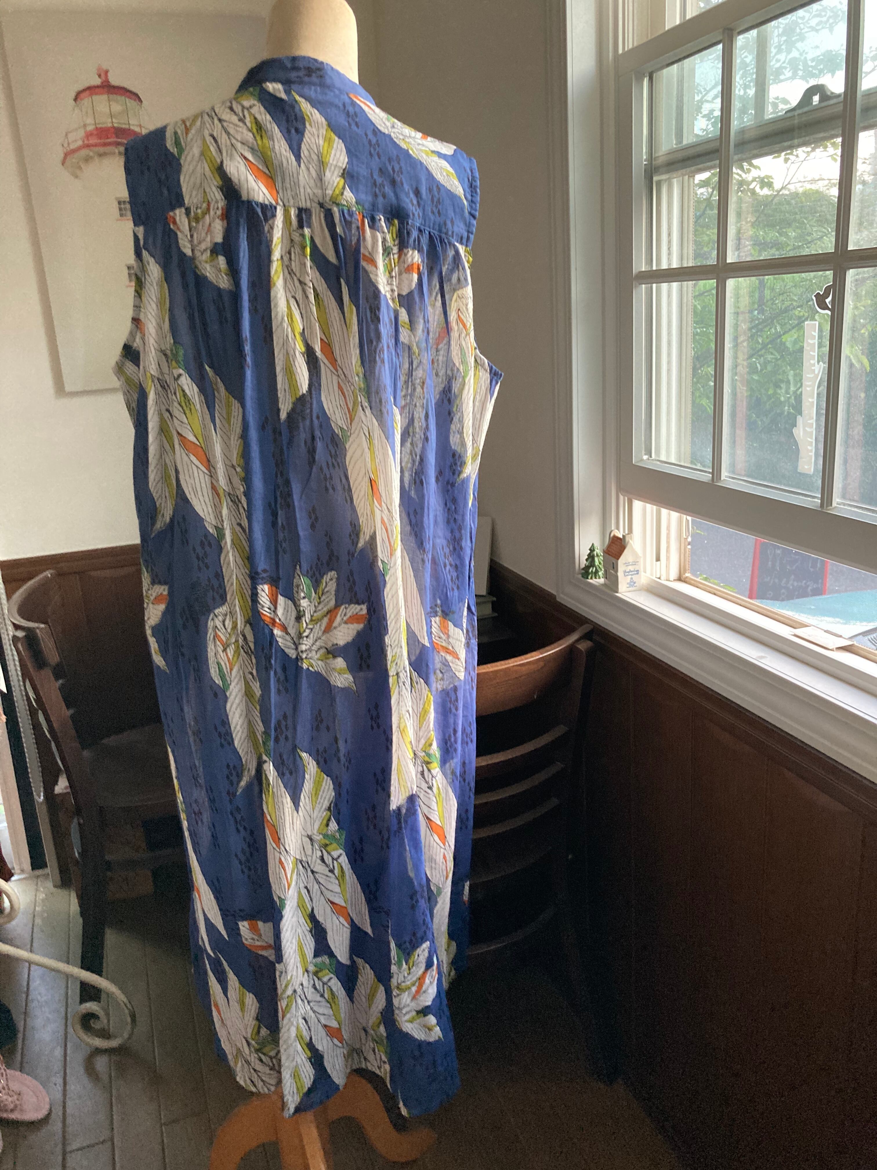 スパイシーな色合いのリーフ柄が流線型を描き、リゾート感漂うワンピース。溜まったクルーネックの襟元や肩からのギャザーからの落ち感、ノースリーブが、クールでありながらも凛とした大人の女性の雰囲気をまといます。