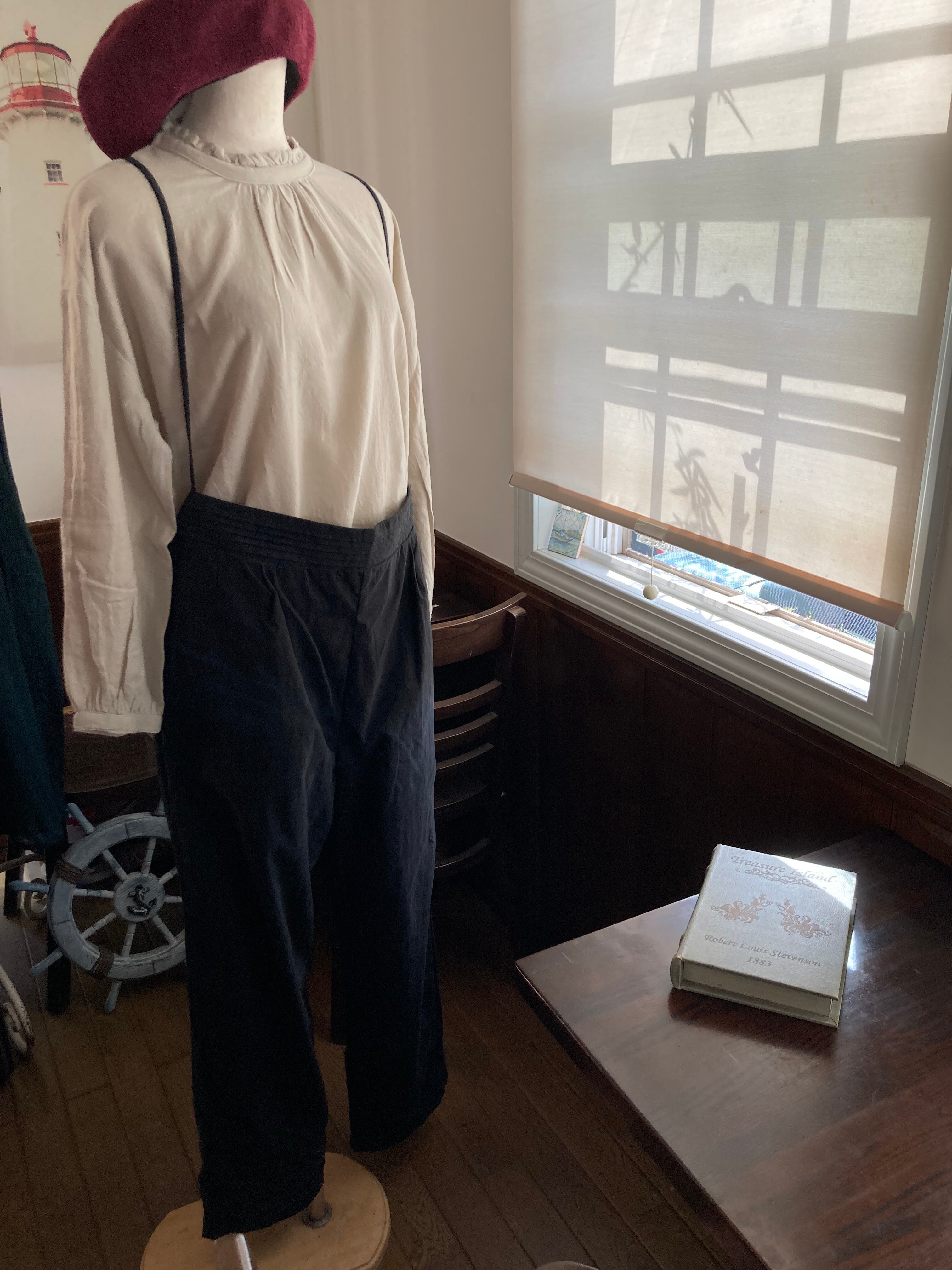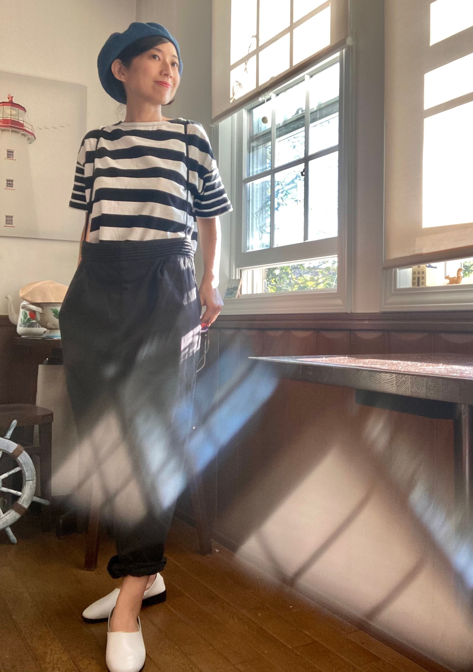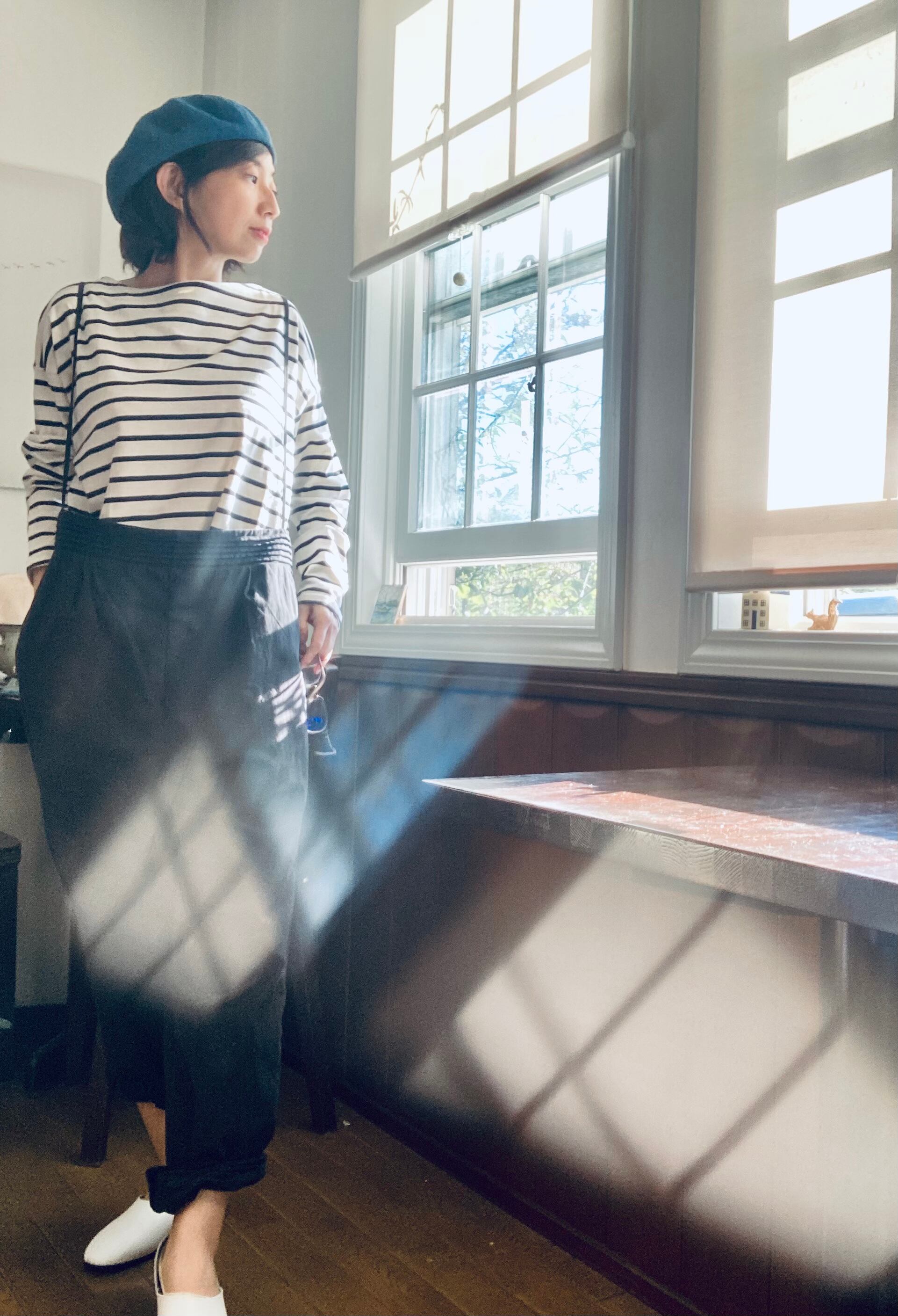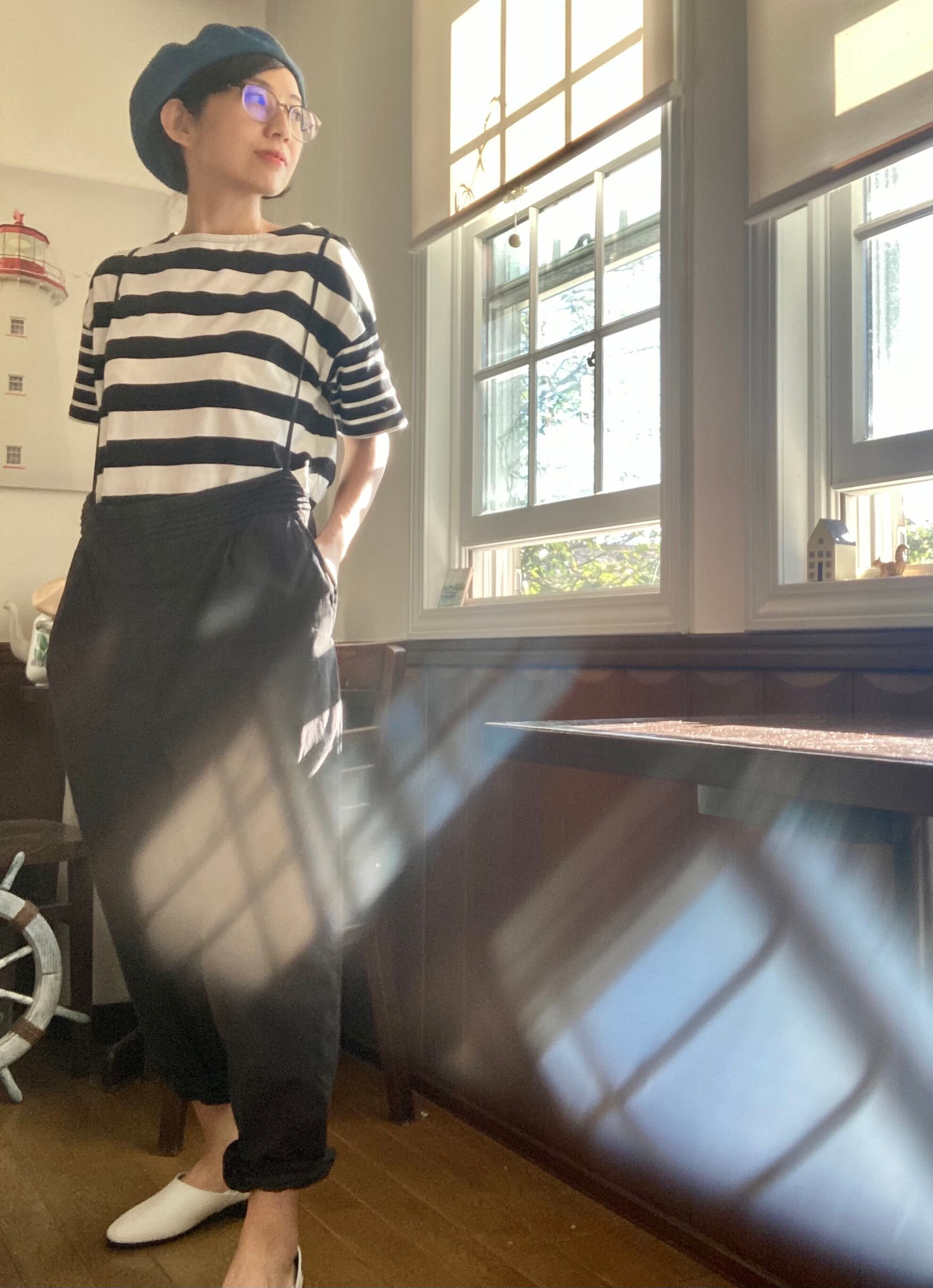 ウエストのタックもアクセント。ラインを拾わないシルエットでリラックス感のある雰囲気です。Tシャツやニット、ブラウスなどオールシーズン着回せるアイテム。肩ひもは後ろで調節できるので、お好みのサイズ感で着用していただけます。
