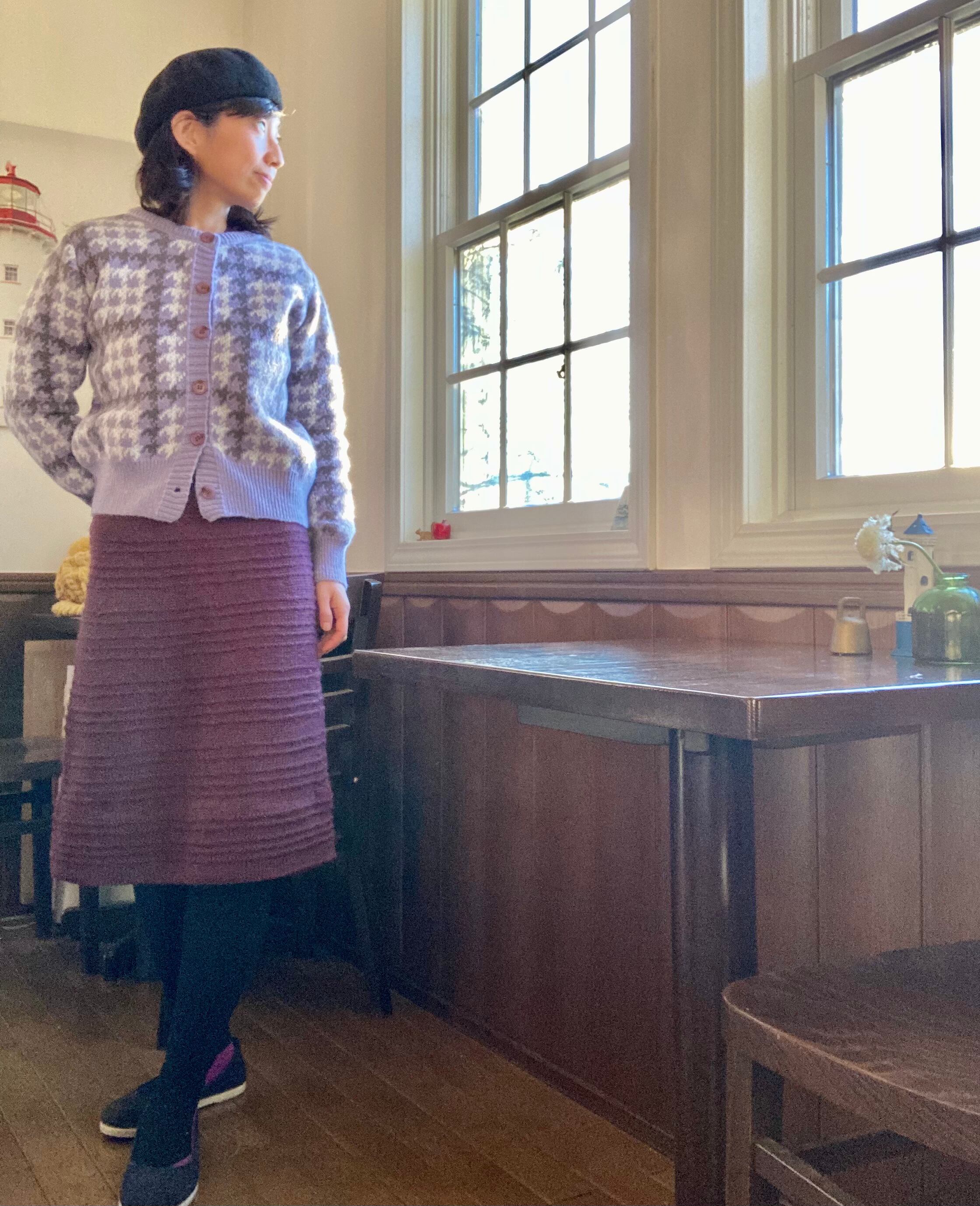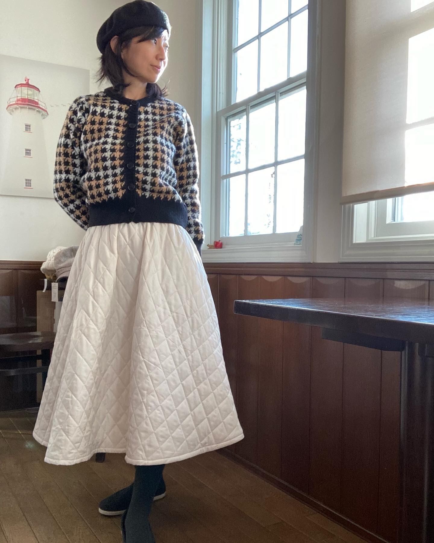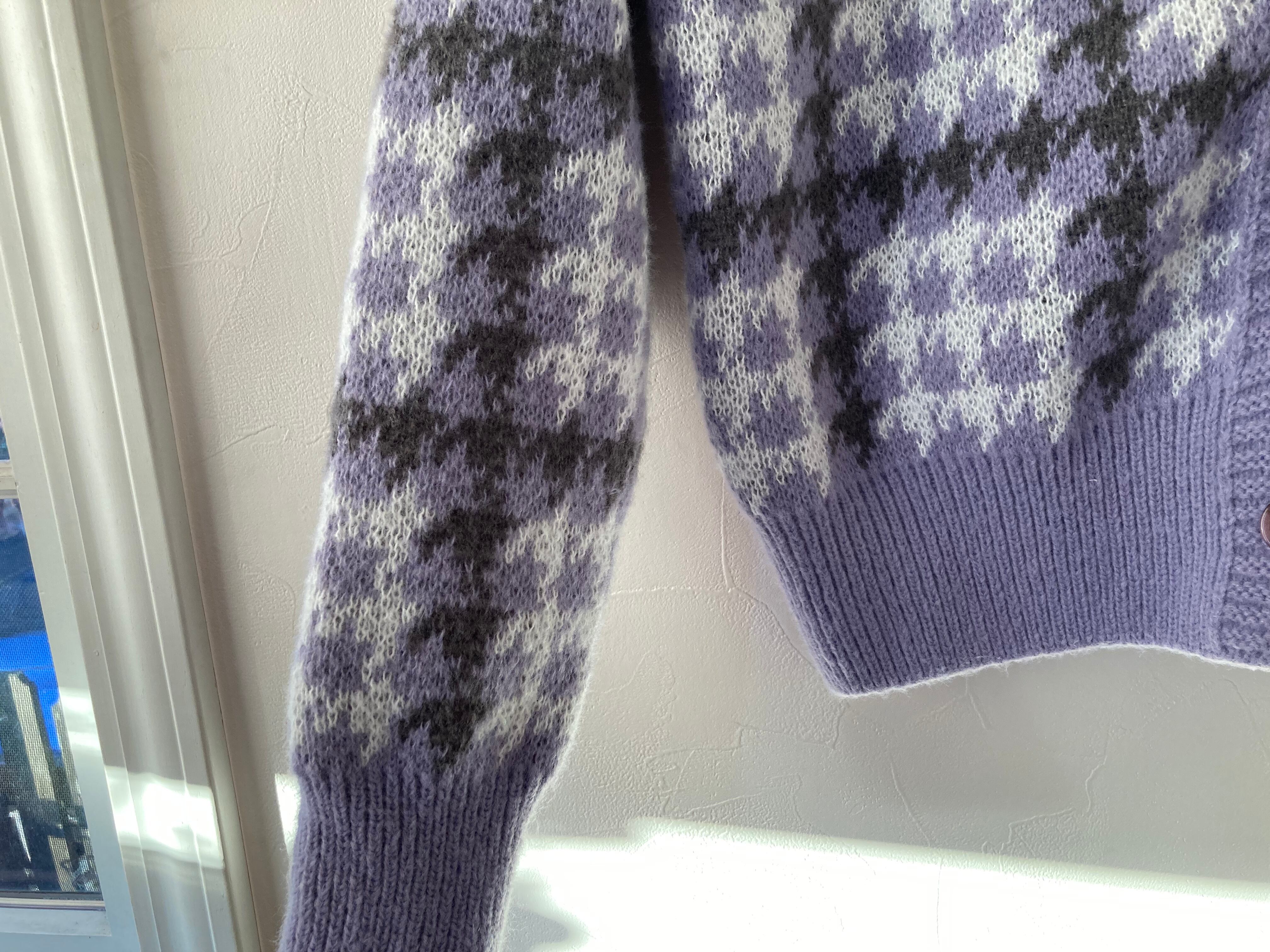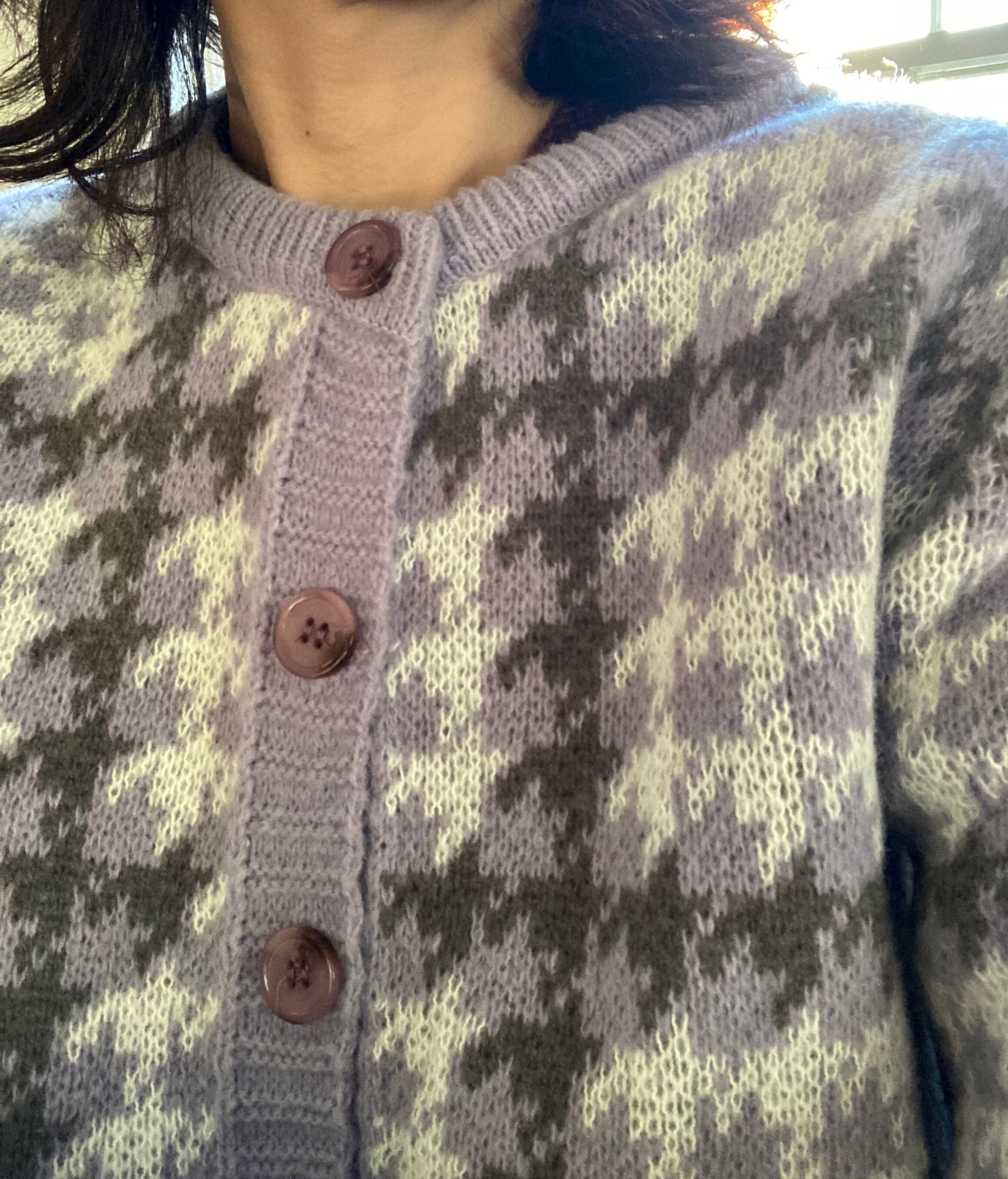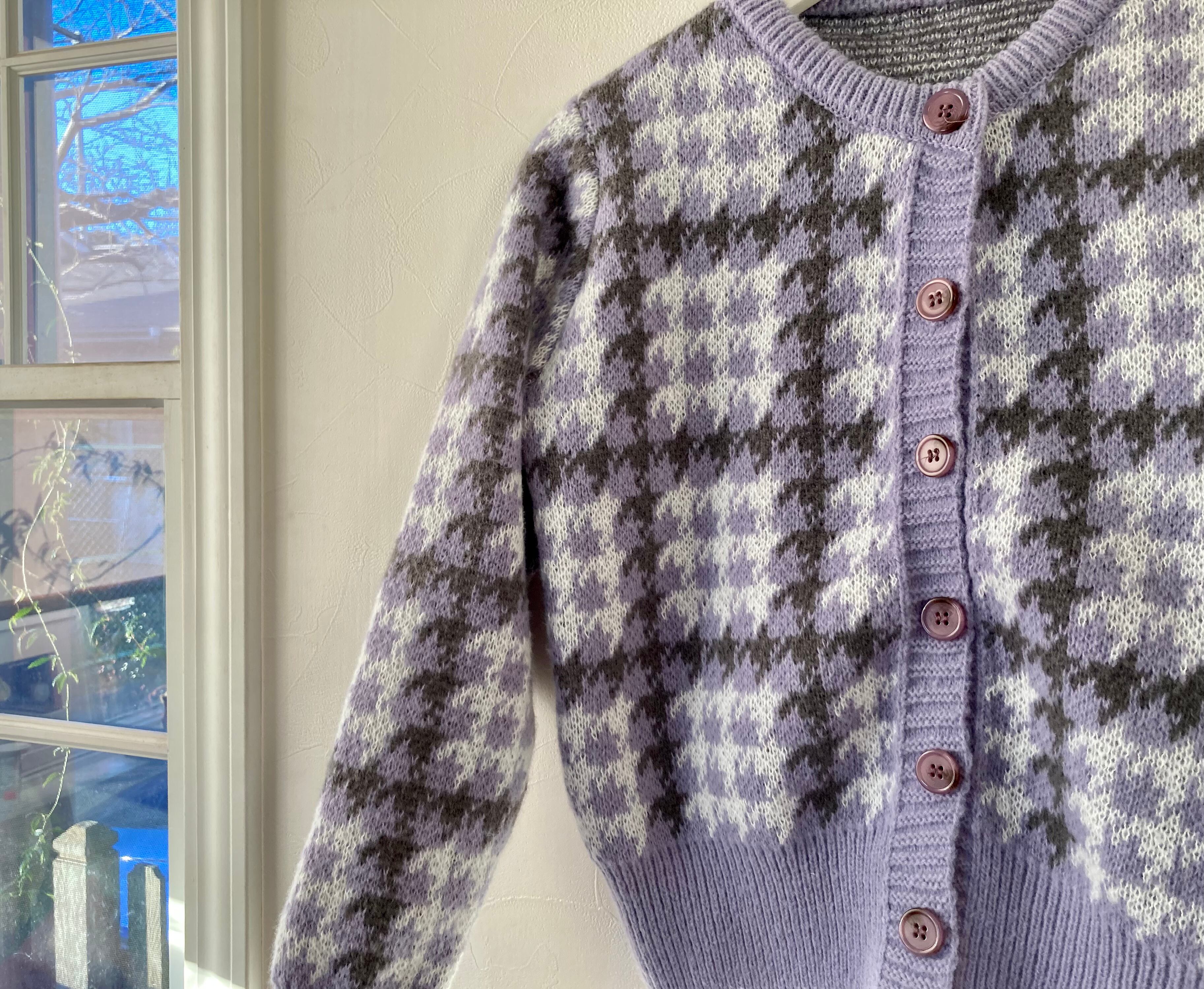 千鳥格子のグラデーションがノスタルジックで温かみのあるニットカーディガン。ふんわりと柔らかでありながら厚みのある風合いで、しっかり温もりを感じられます。色みも明るめで、コーディネート次第で春まで着ていただけるかと思います。少し短めの丈は、ワイドパンツやフレアスカートなどにも相性がよく、さまざまなボトムスに合わせやすく、きちんと感も持ち合わせています。