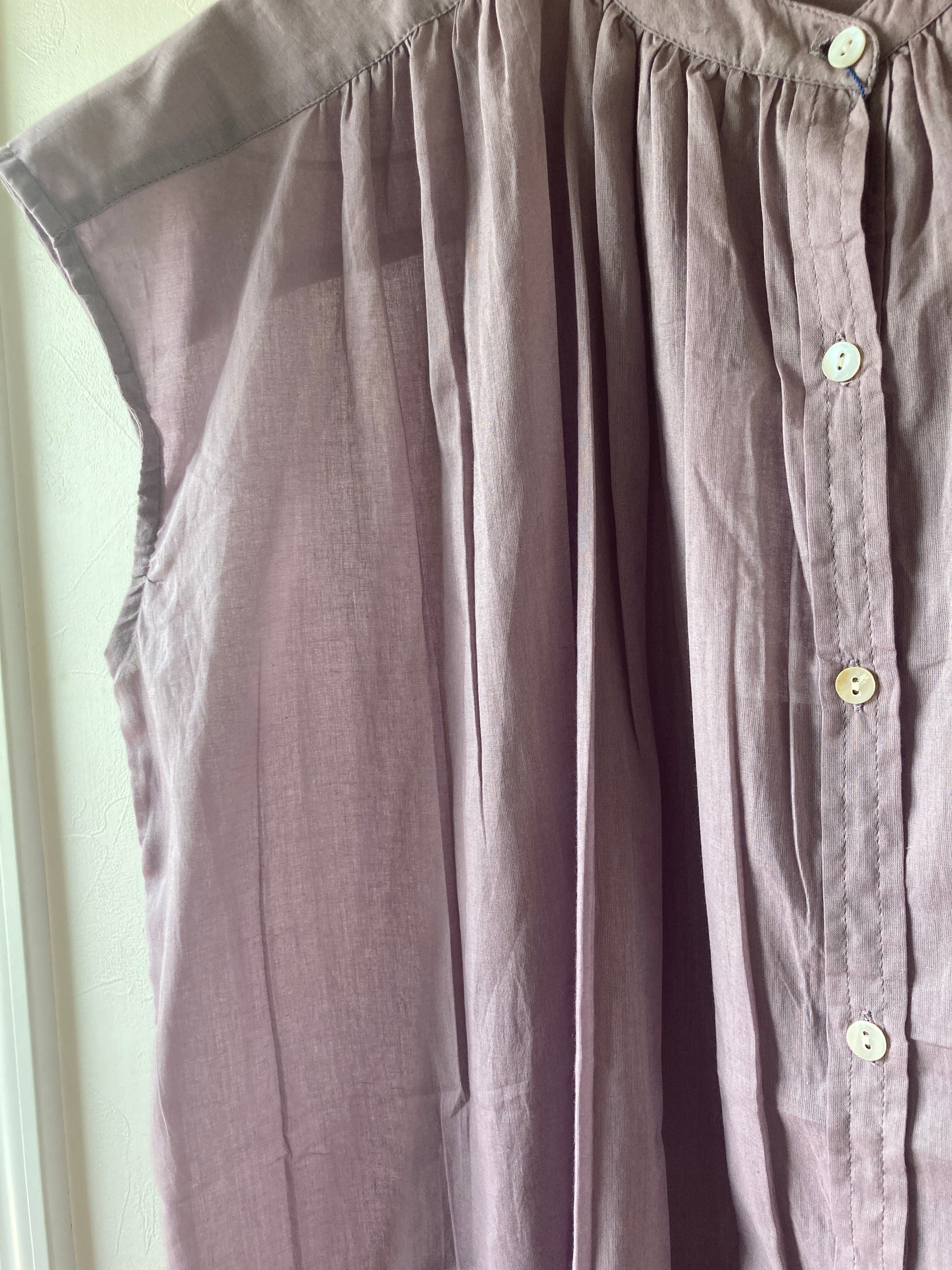 コットンボイルギャザーチュニックブラウス ラベンダー、ブラウン、ホワイト