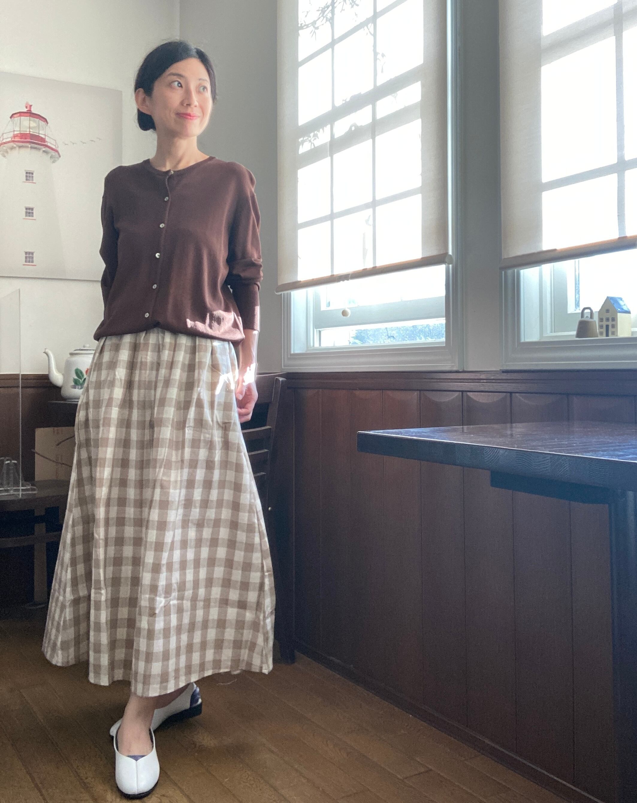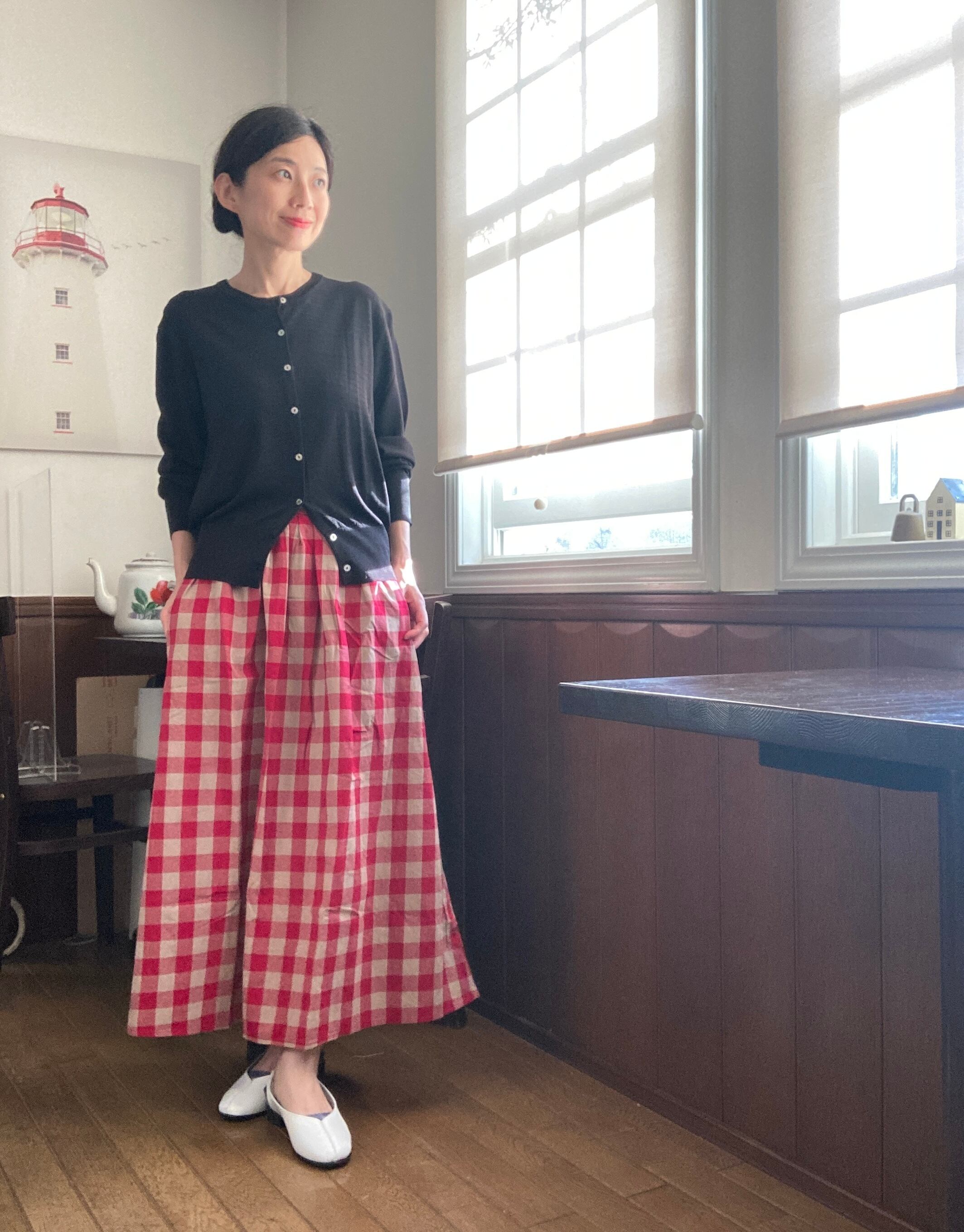 無地のカットソーを合わせたり、ブラウスと合わせてノスタルジックにも。長い季節ご愛用いただけます。
