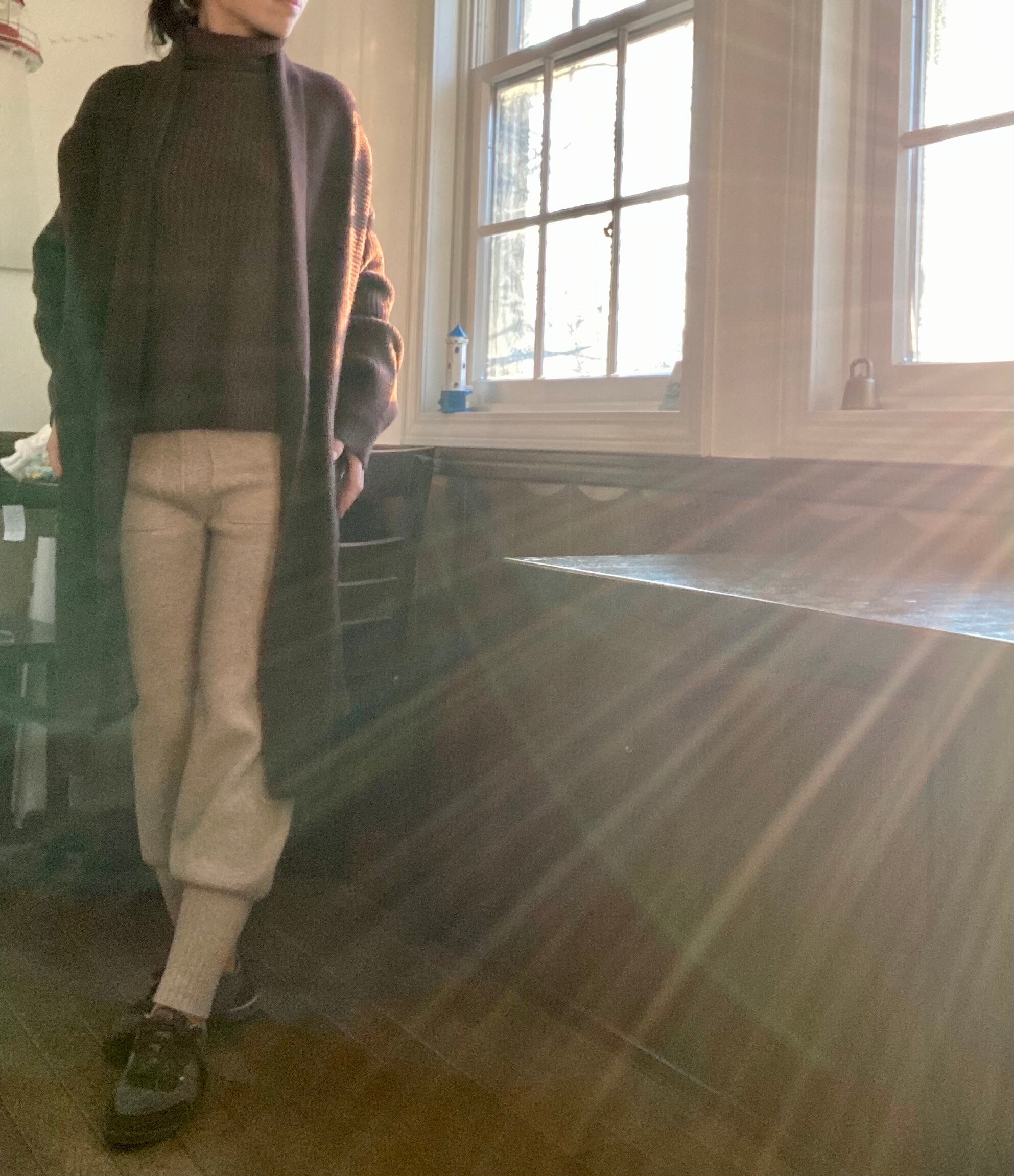 襟元の後ろが立ち上がるので、暖かく、横からのシルエットもかっこいいです。