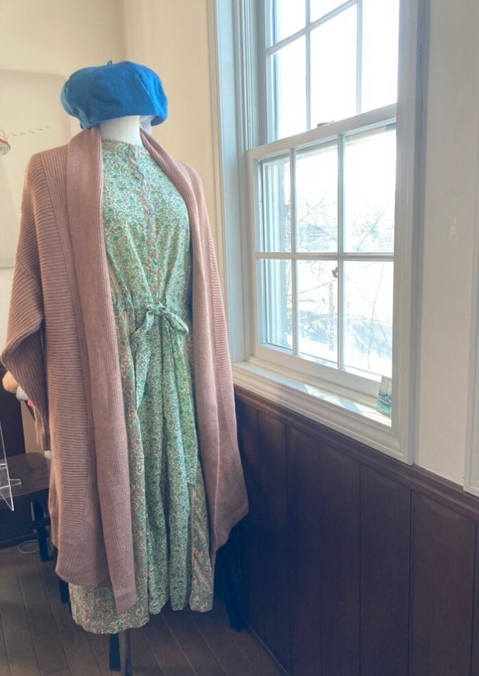 袖がやや細みになっているので、動きやすくてバランスに優れたデザインです。パンツにも、スカート、ワンピースにも合わせやすく、コートがわりにも。