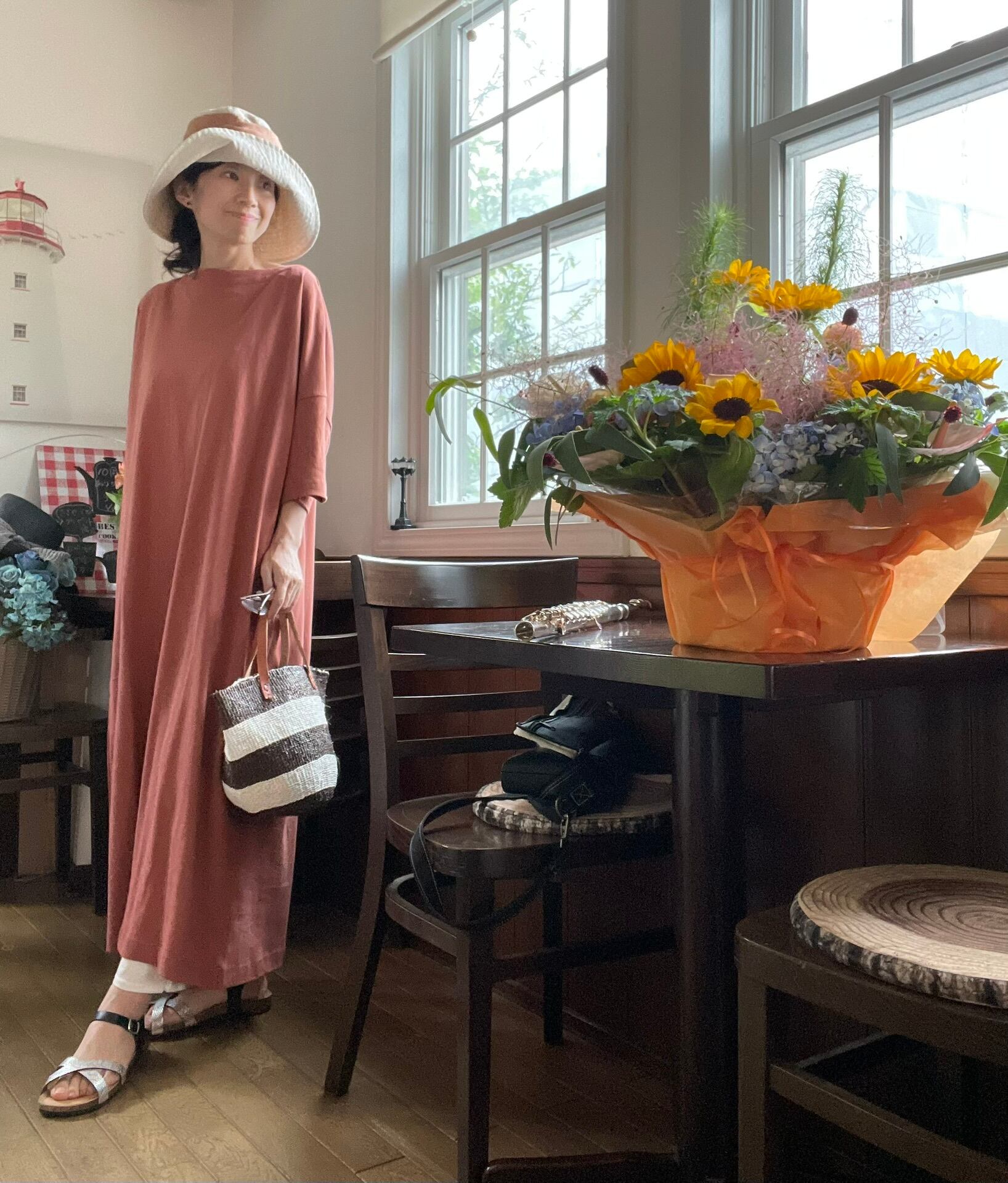 足首が見える着丈のワンピースは、そのままはもちろんレギンスやパンツとのレイヤードコーデも楽しめます。